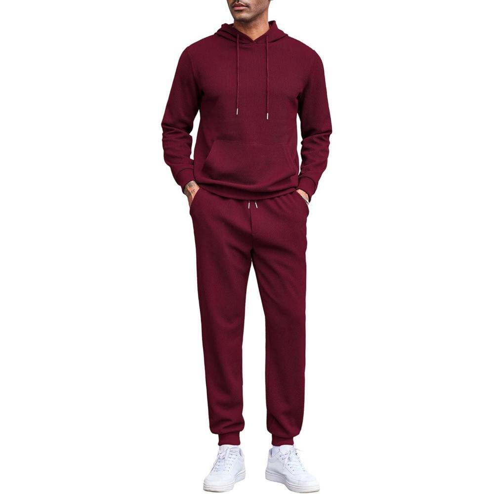 COOFANDY Men’s Tracksuits 2 Pieces Waffle Hoodies Sweatsuit Sets Sports Jogging Suit Set(Wine Red)