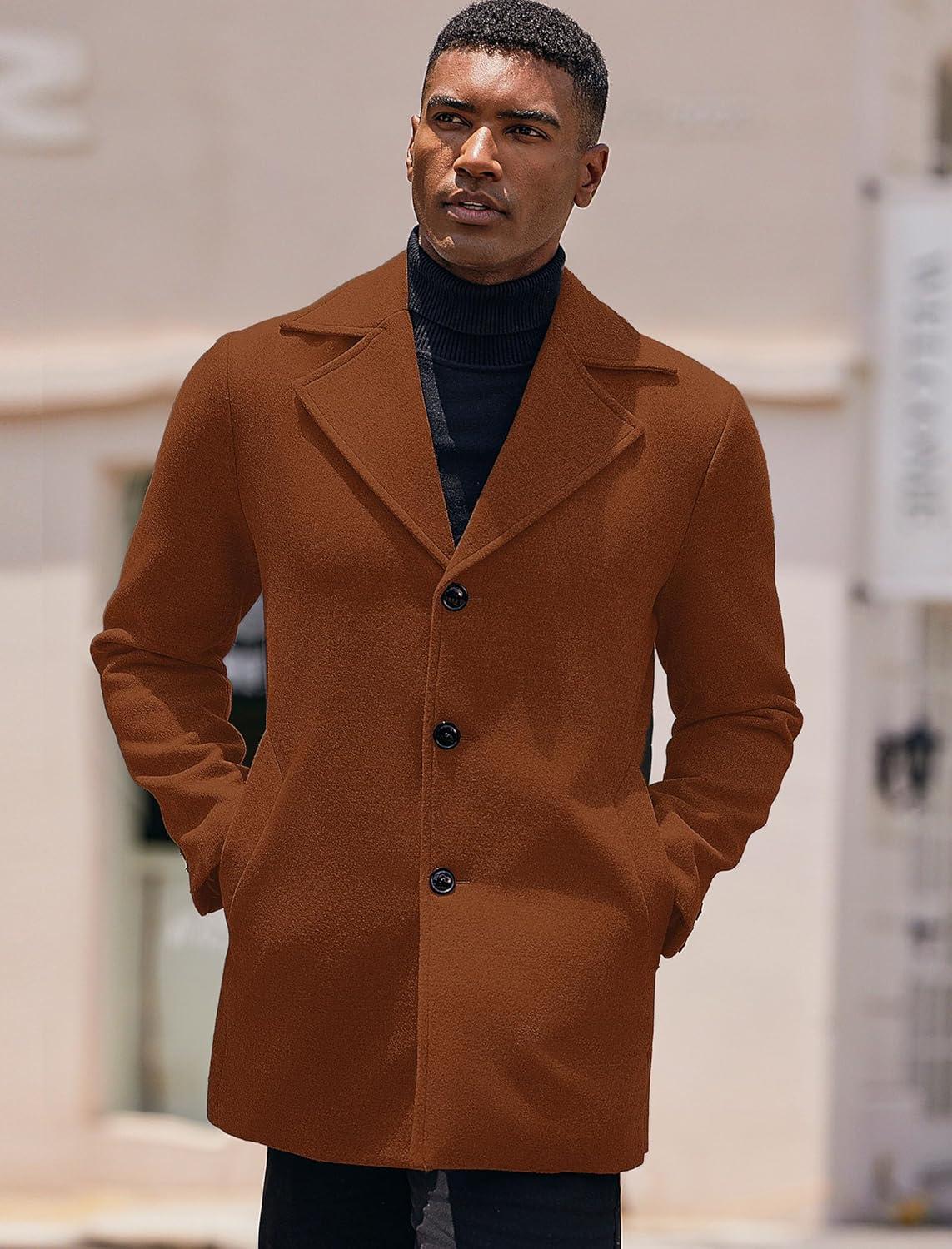 COOFANDY Mens Trench Coat Notched Collar Single Breasted Peacoat Winter Overcoat With Pockets(Brown)
