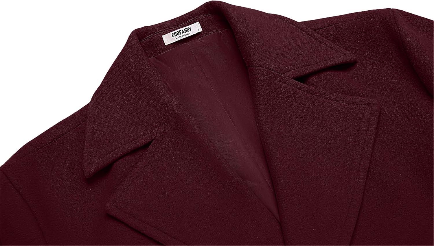 COOFANDY Mens Trench Coat Notched Collar Single Breasted Peacoat Winter Overcoat With Pockets(Burgundy Red)