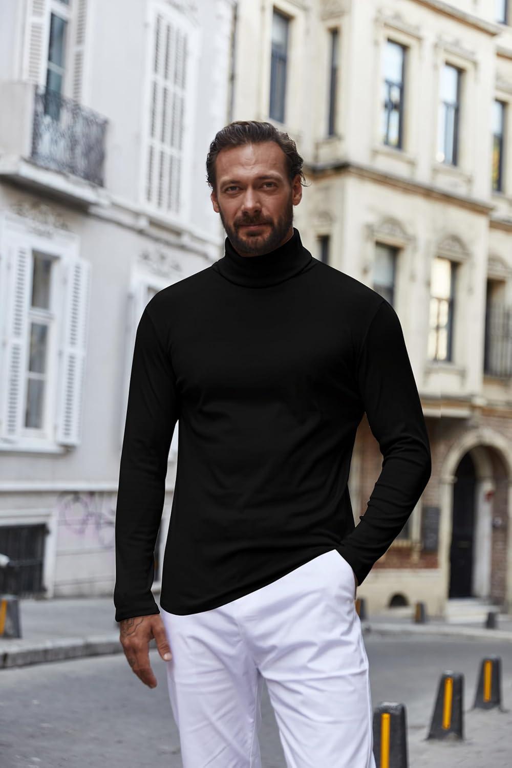 COOFANDY Men’s Turtle Neck Shirts High Neck Mock Neck T Shirts Long Sleeve Slim Fit Sweater Casual Thermal Pullover(Black)