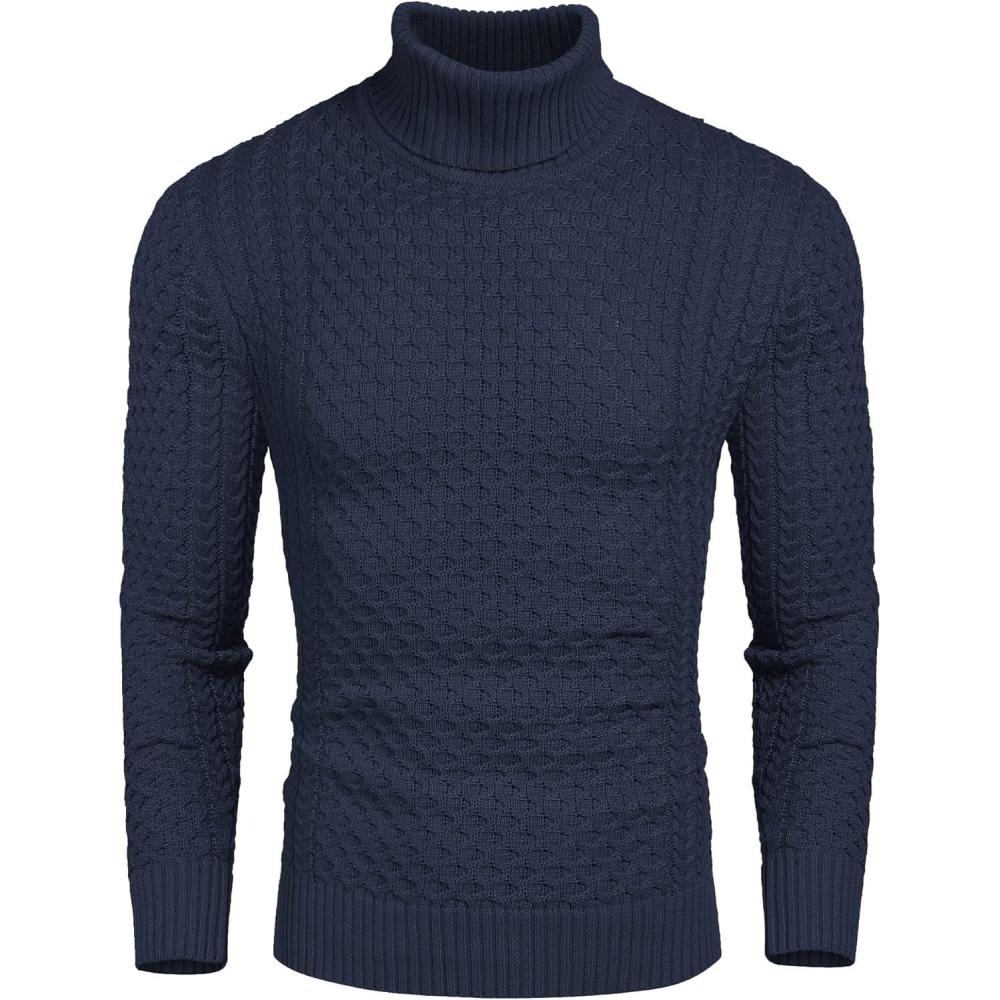 COOFANDY Men’s Turtleneck Jumper Long Sleeve Turtleneck Warm Knitted Plain Sweater Casual Slim Fit Winter Sweater(Navy Blue)