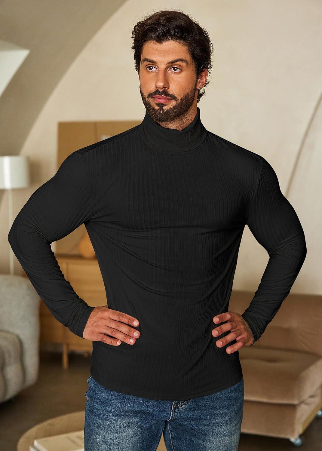COOFANDY Men’s Turtleneck Sweater Slim Fit Lightweight Basic Ribbed Sweaters(01-black)