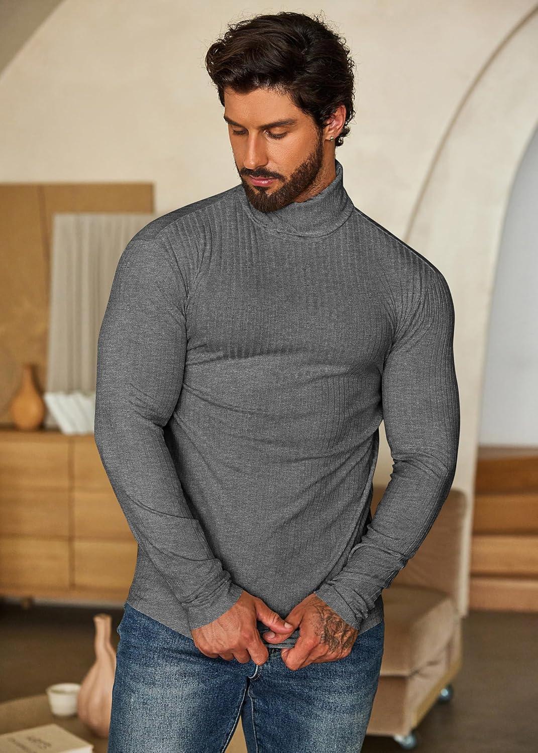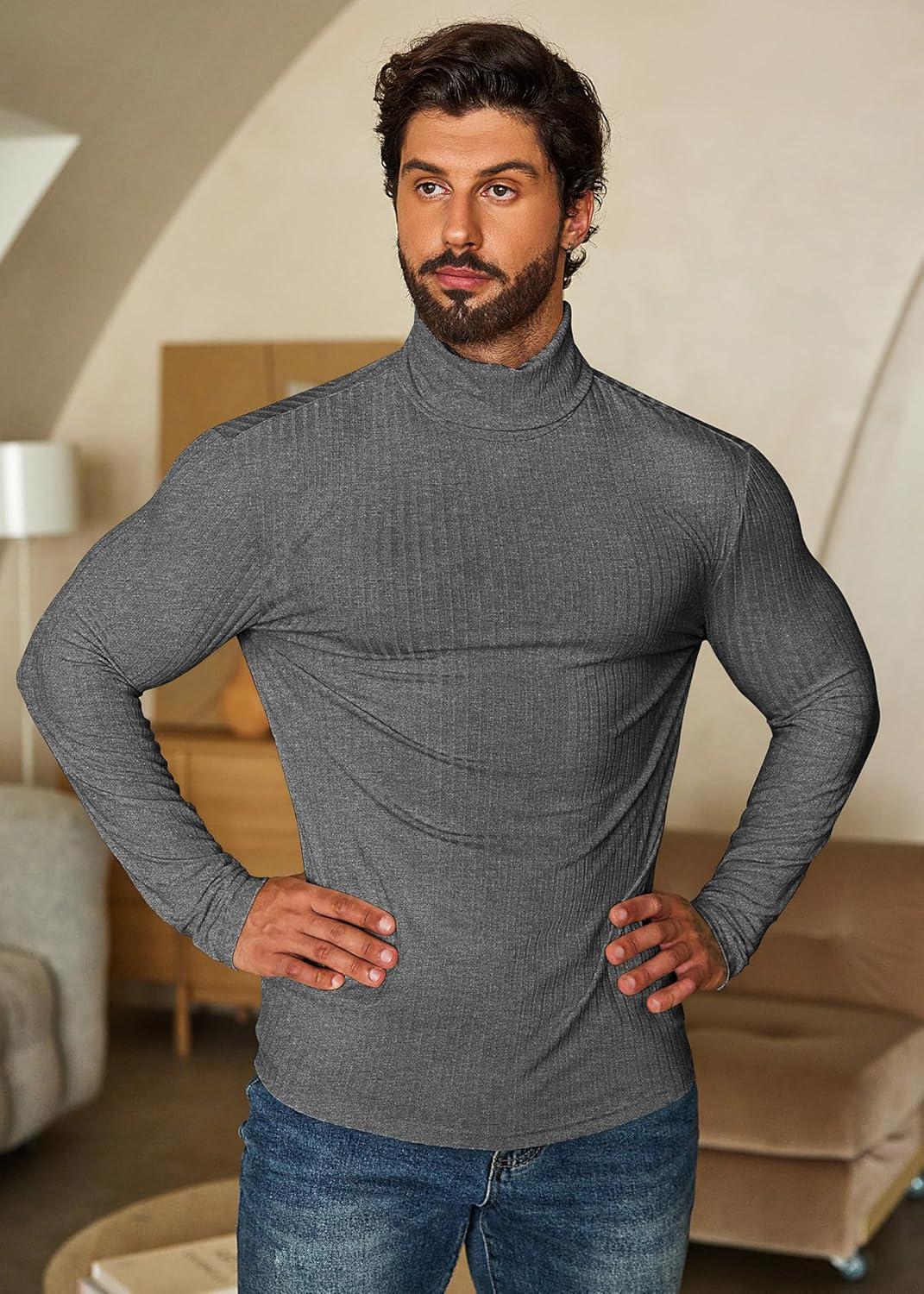 COOFANDY Men’s Turtleneck Sweater Slim Fit Lightweight Basic Ribbed Sweaters(Dark Grey)