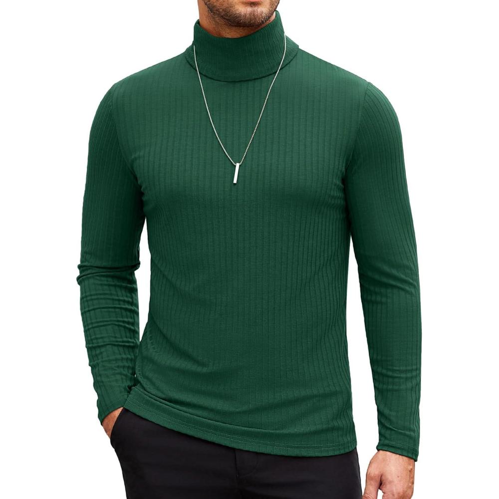 COOFANDY Men’s Turtleneck Sweater Slim Fit Lightweight Basic Ribbed Sweaters(Green)
