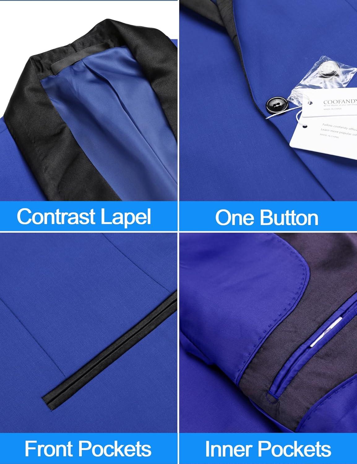 COOFANDY Men’s Tuxedo Jacket One Button Dress Suit Blazer Jacket for Wedding Dinner Prom Party(Blue)