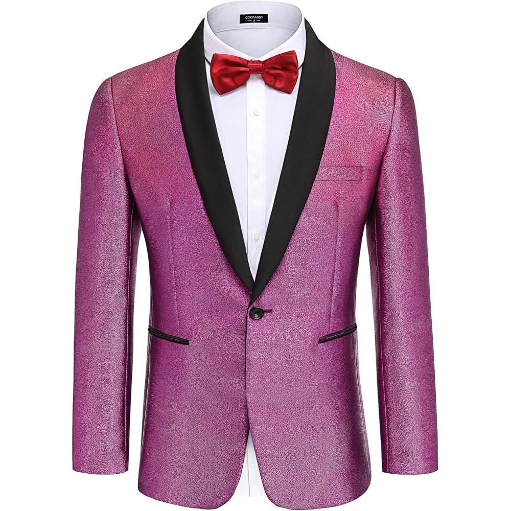 COOFANDY Men’s Tuxedo Jacket Slim Fit Shawl Lapel Blazer One Button Suit Jackets for Party Prom Wedding Dinner(Shiny Pink)