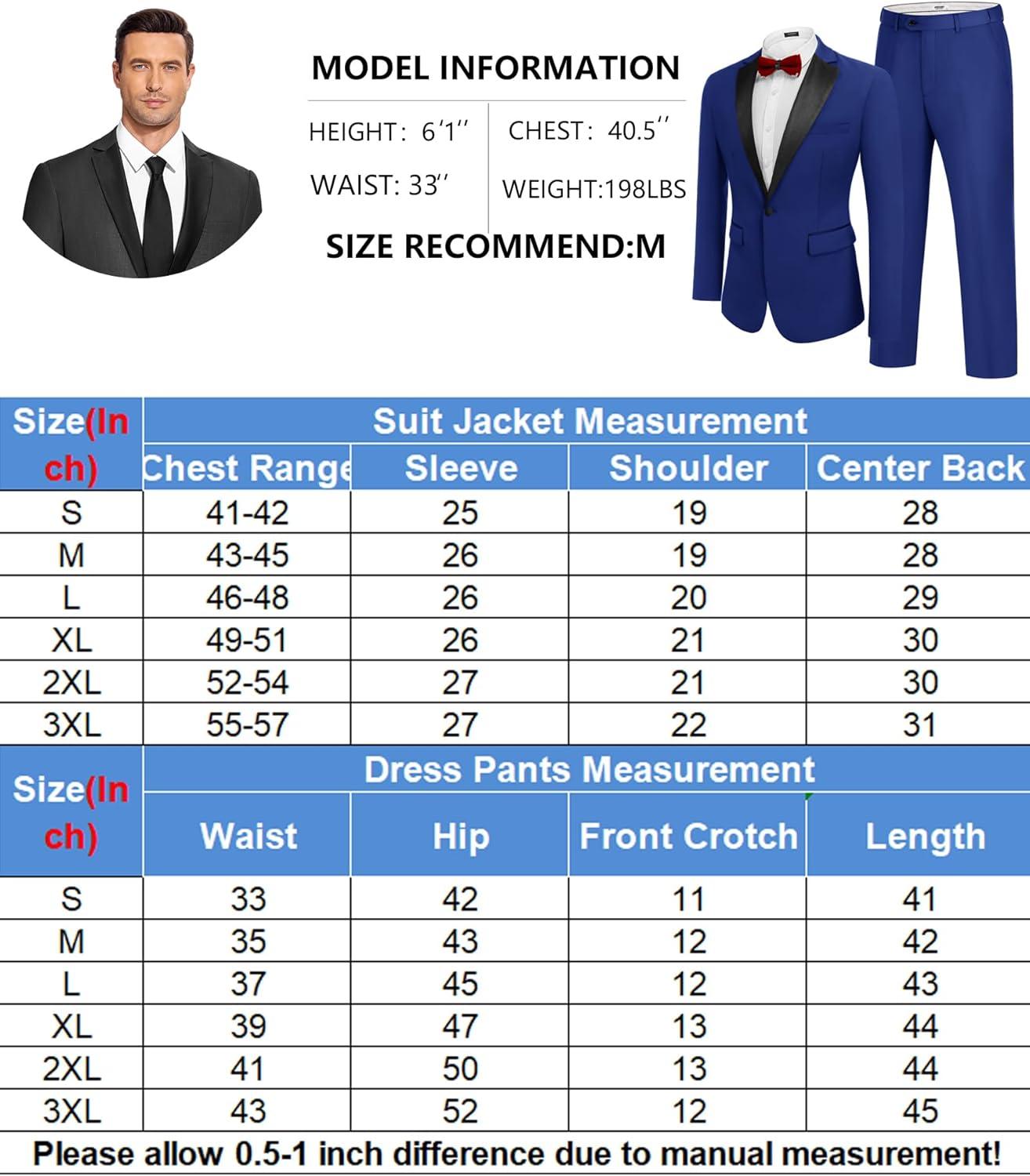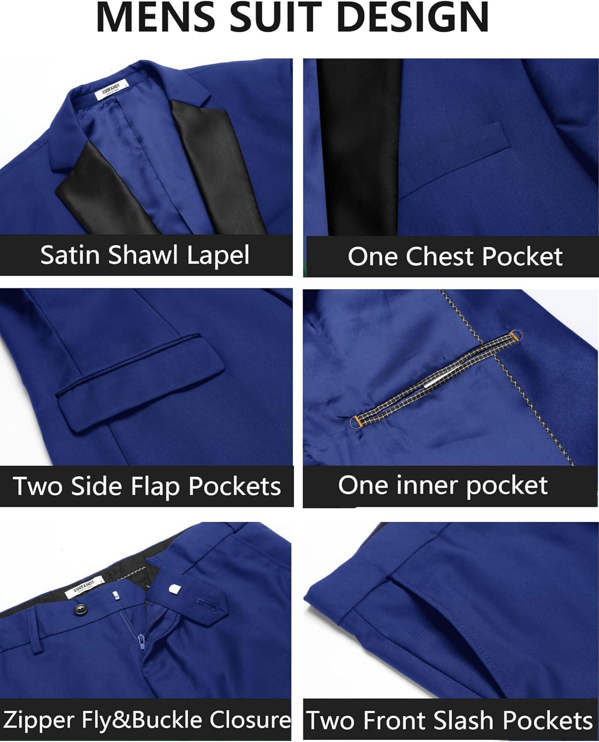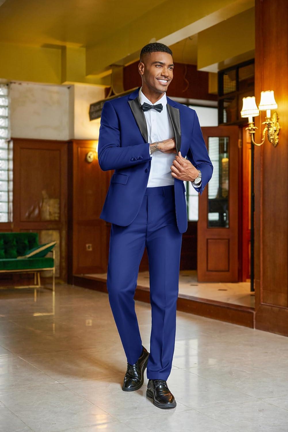 COOFANDY Mens Tuxedo Suit Set Slim Fit 2 Piece One Button Christmas Blazer Jacket Pants for Wedding,Dinner,Prom(Blue)