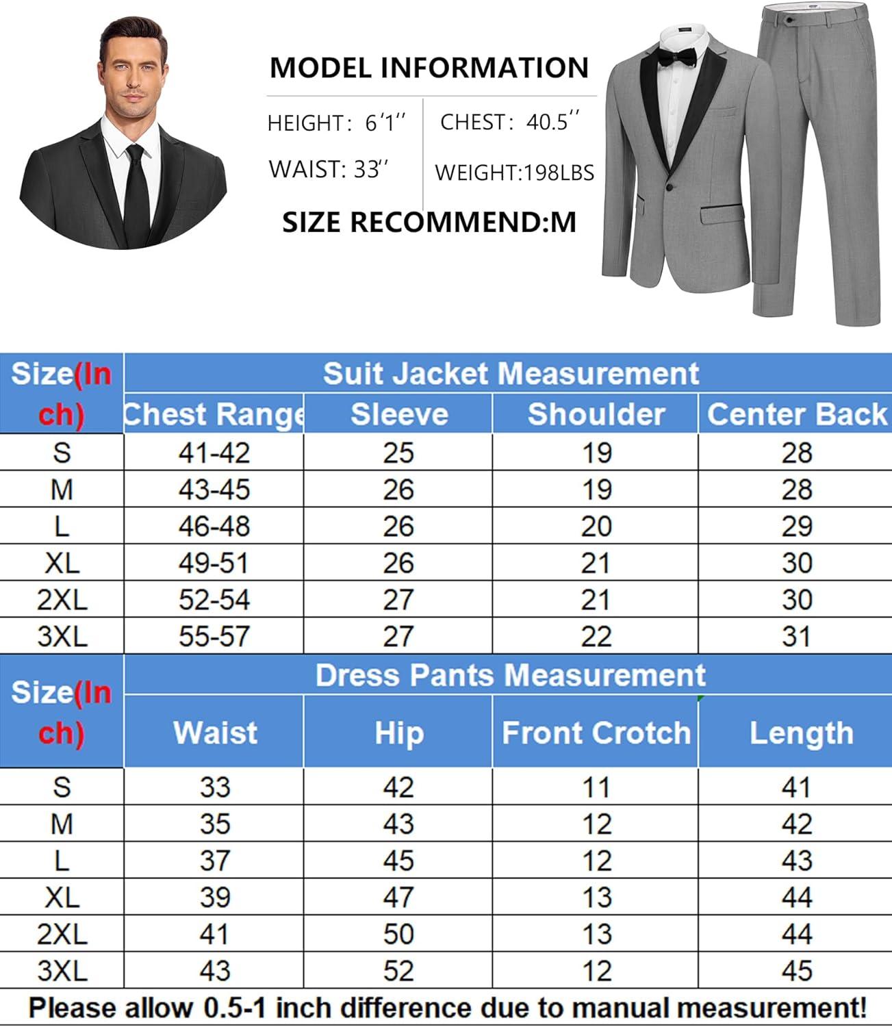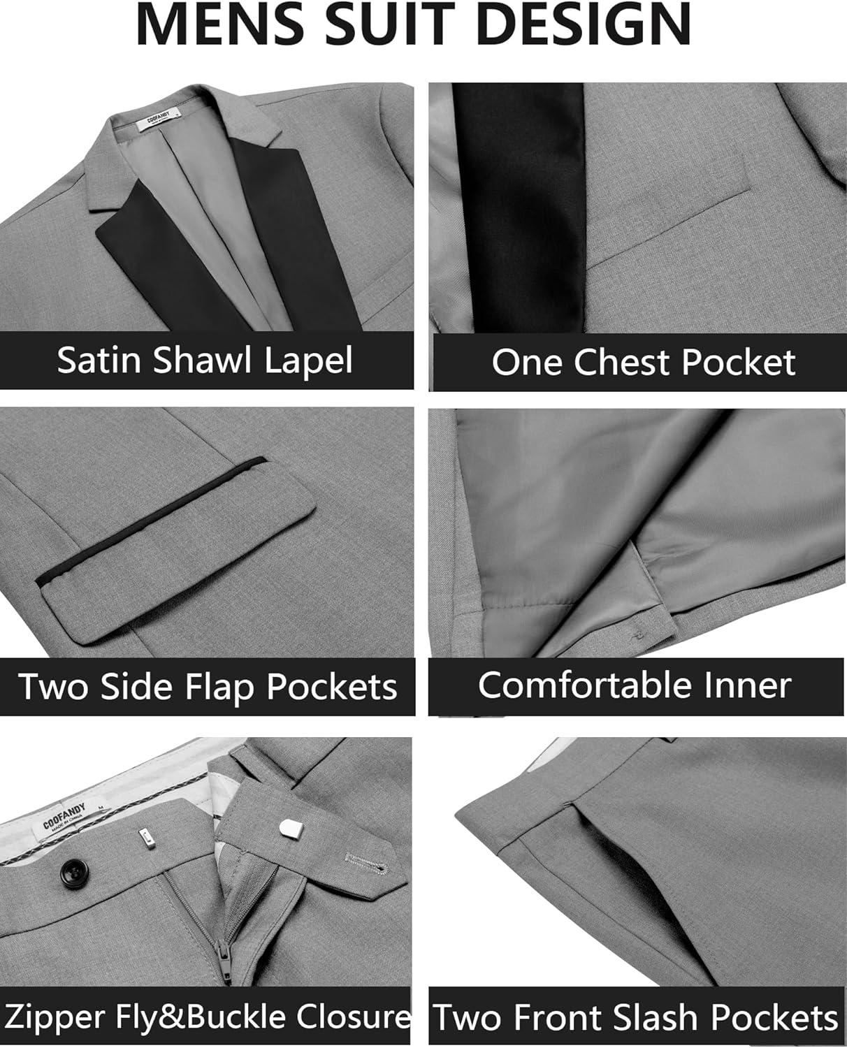 COOFANDY Mens Tuxedo Suit Set Slim Fit 2 Piece One Button Christmas Blazer Jacket Pants for Wedding,Dinner,Prom(Light Gray)