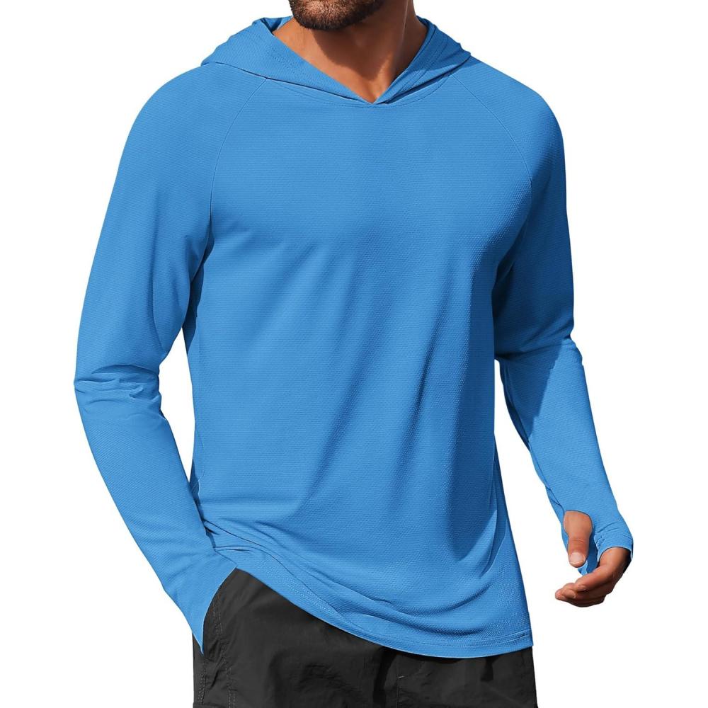 COOFANDY Mens UPF 50+ Hoodie Shirts Long Sleeve Rash Guard Sun Protection Fishing Shirts Lightweight Quick Dry Hoodies(Blue)