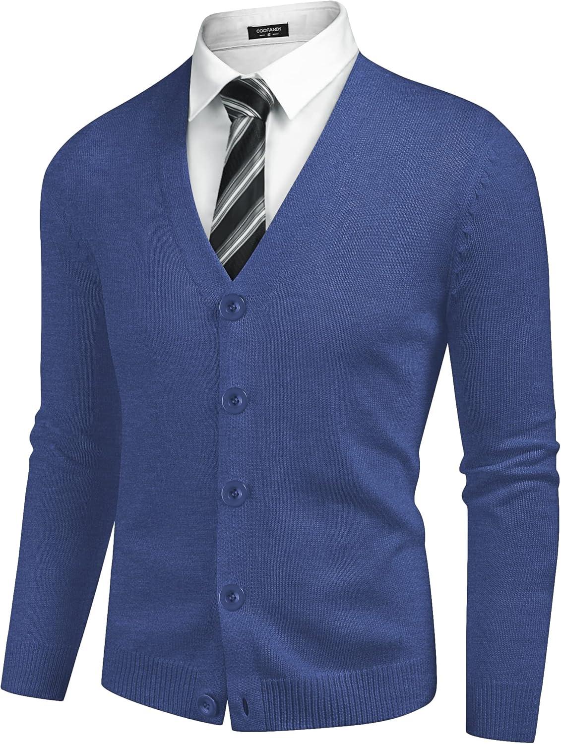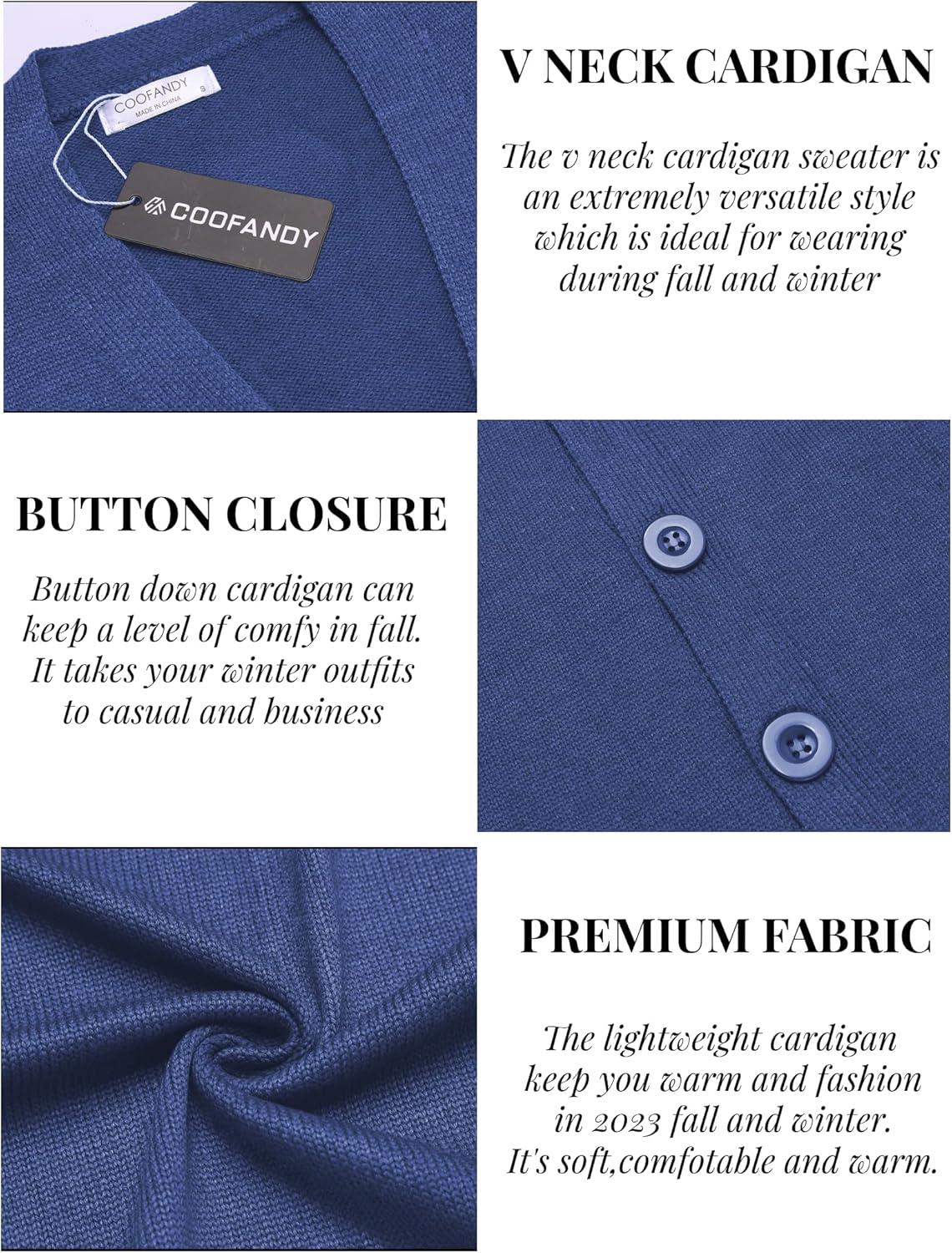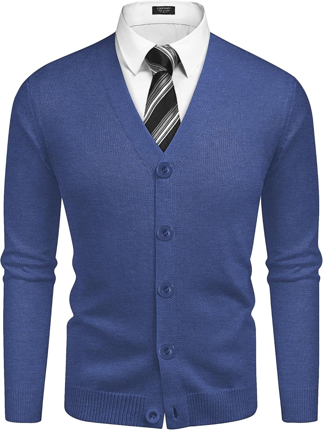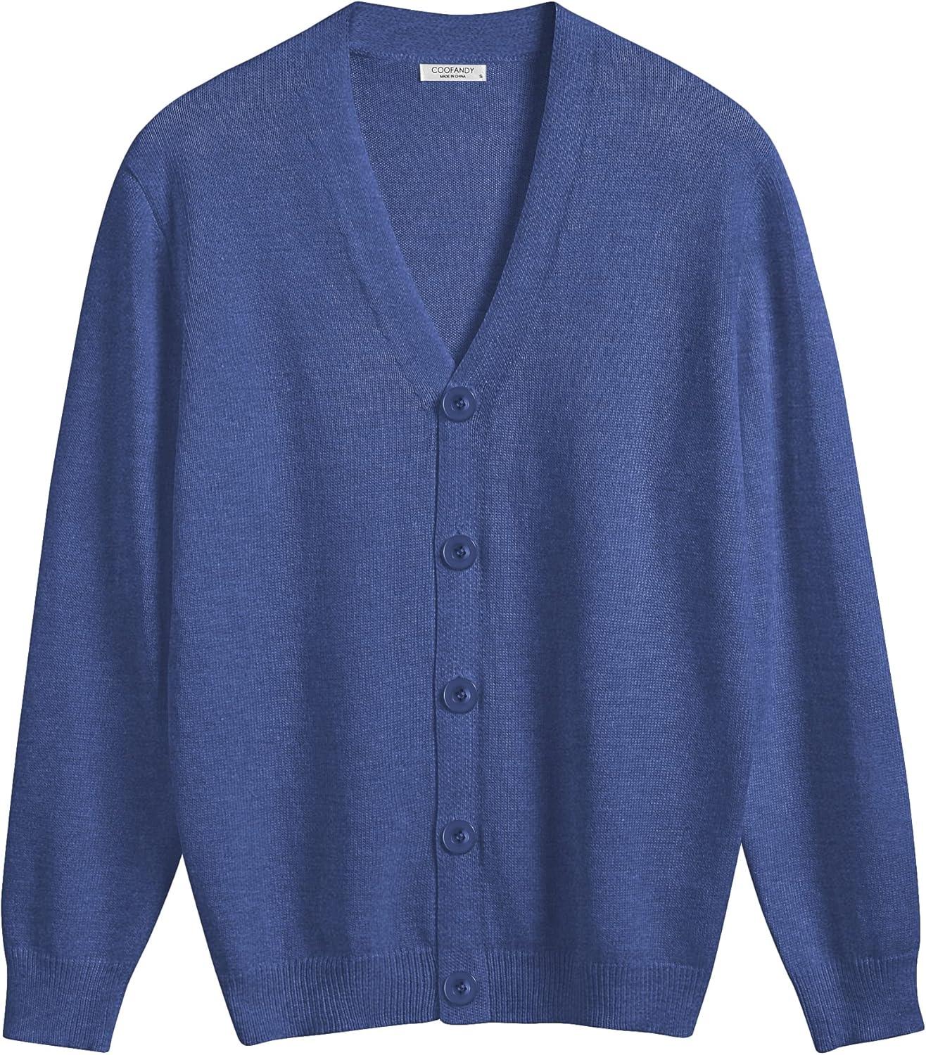 COOFANDY Men’s V Neck Cardigan Sweater Casual Lightweight Button Down Knitted Cardigan Sweater(Blue)