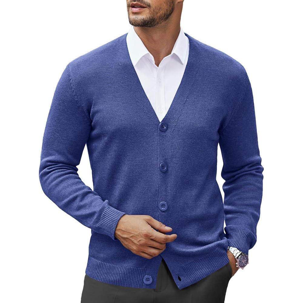 COOFANDY Men’s V Neck Cardigan Sweater Casual Lightweight Button Down Knitted Cardigan Sweater(Deep Blue)