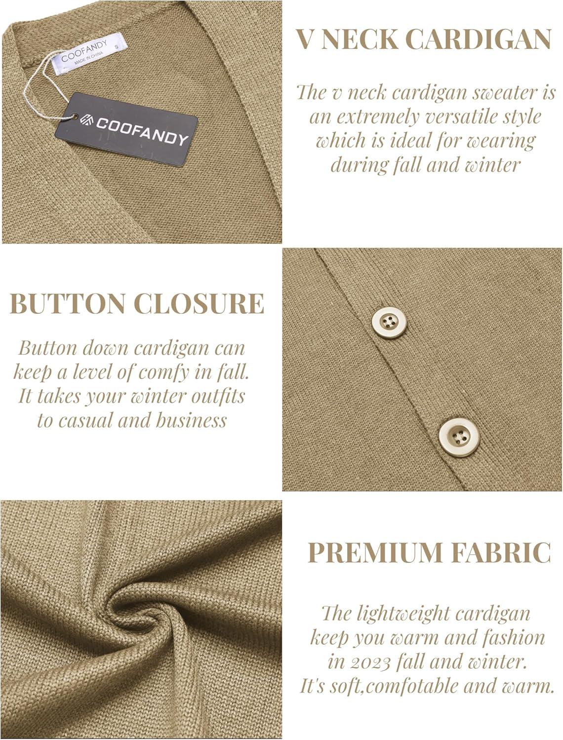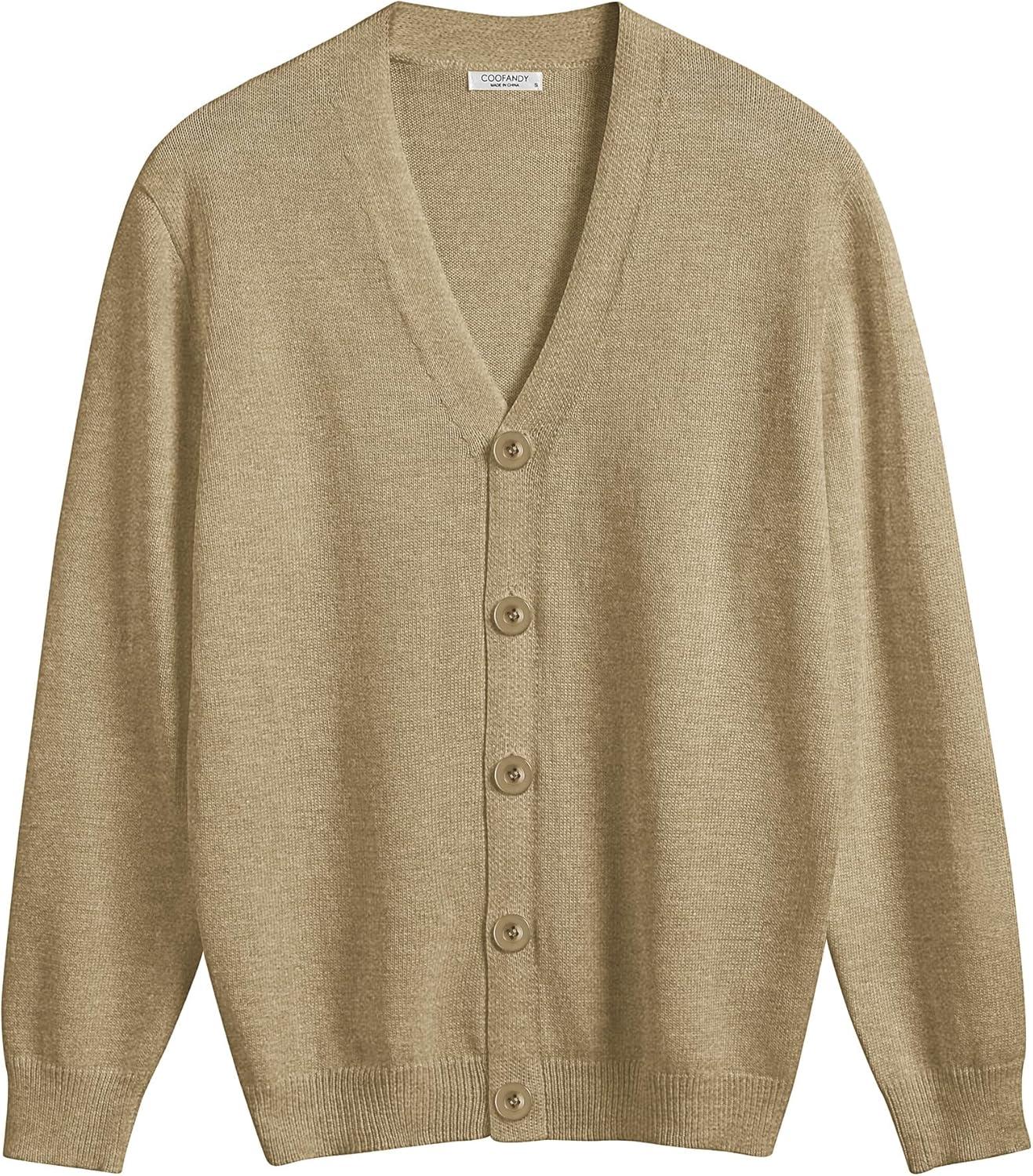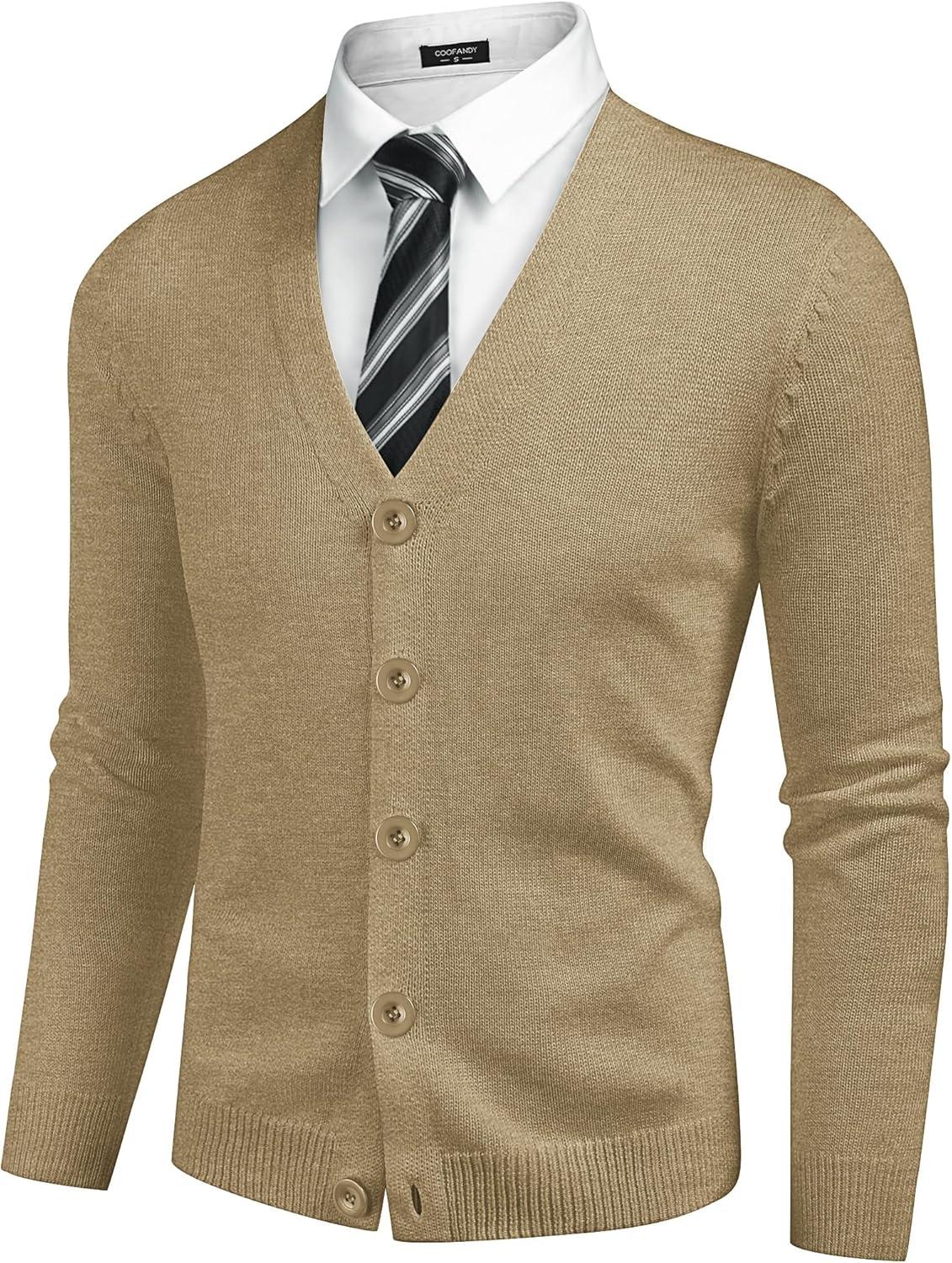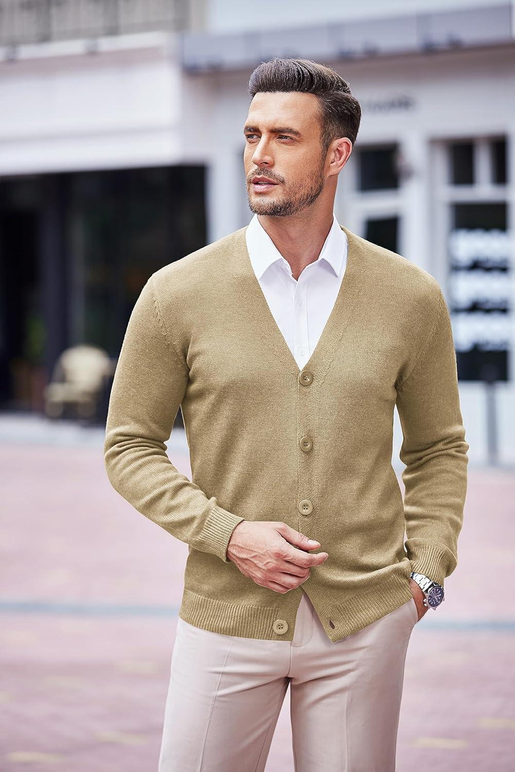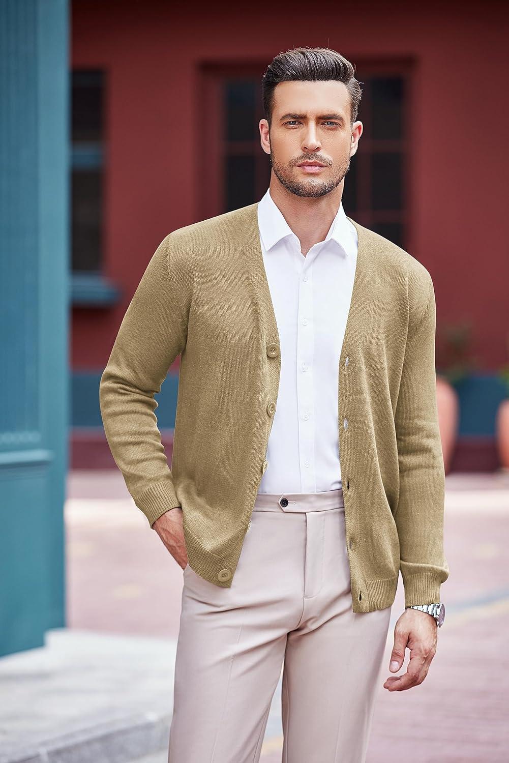 COOFANDY Men’s V Neck Cardigan Sweater Casual Lightweight Button Down Knitted Cardigan Sweater(Khaki)