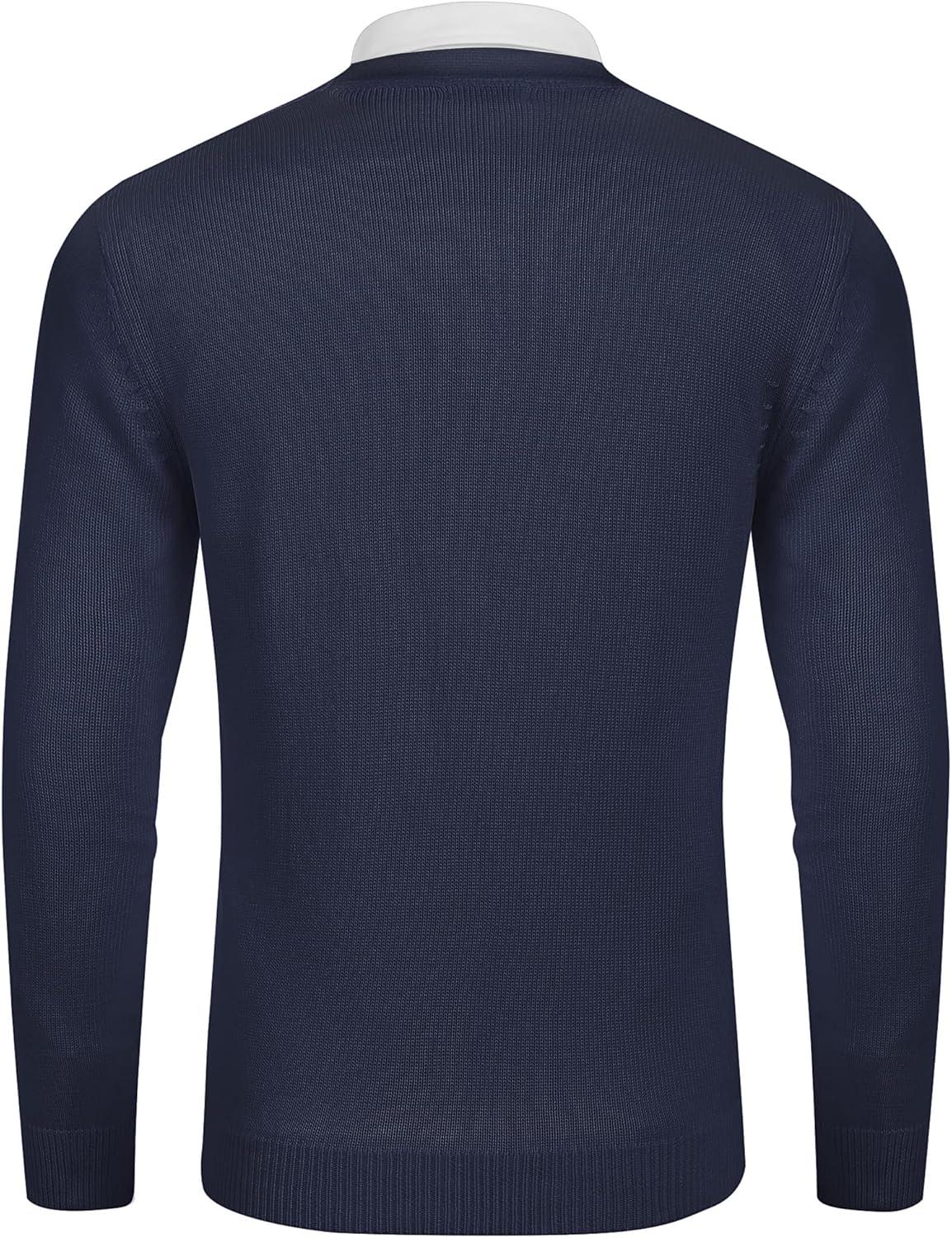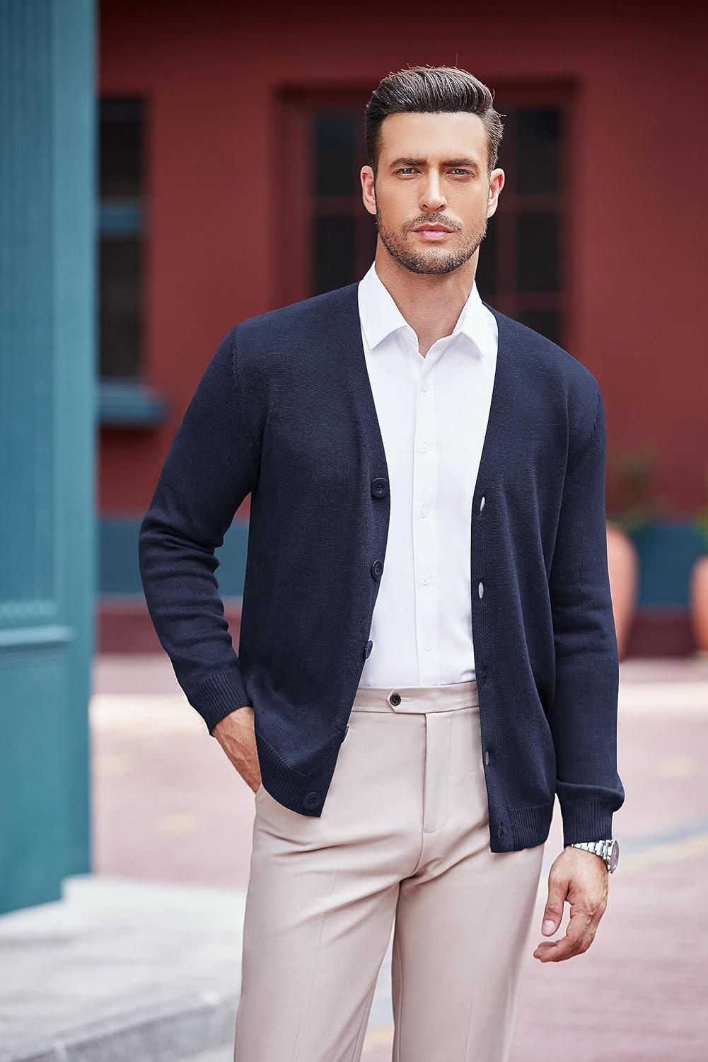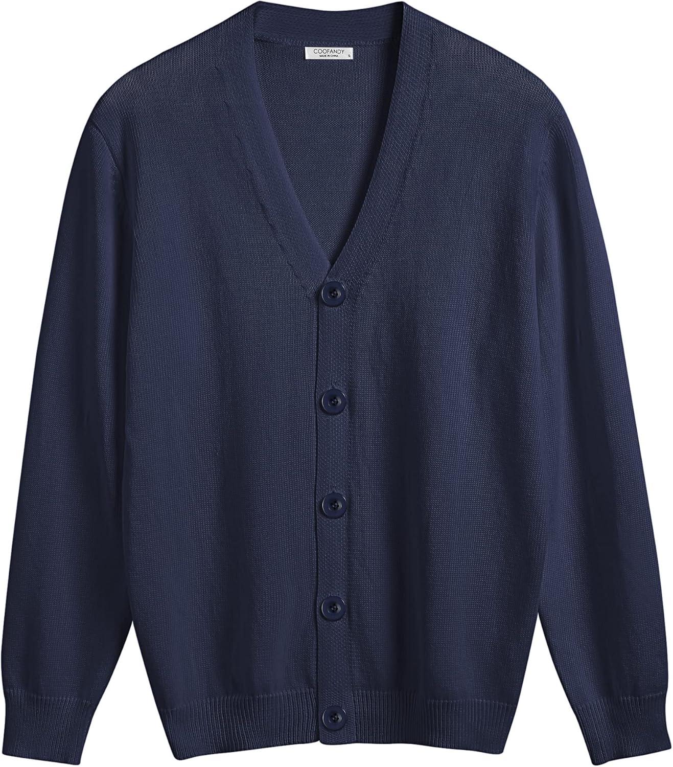 COOFANDY Men’s V Neck Cardigan Sweater Casual Lightweight Button Down Knitted Cardigan Sweater(Navy Blue)