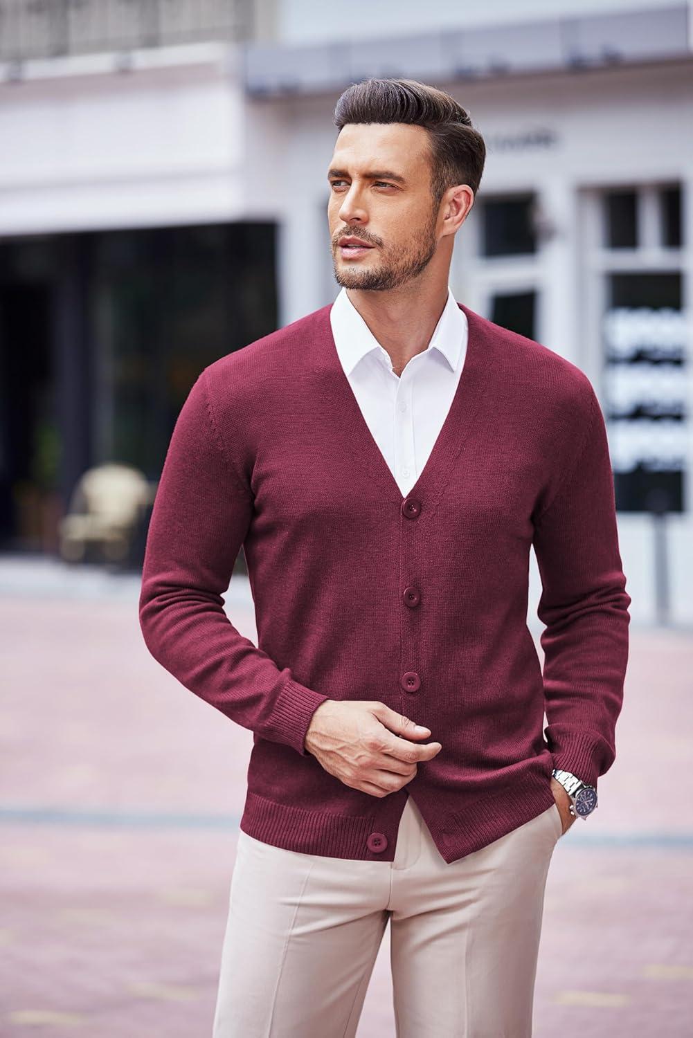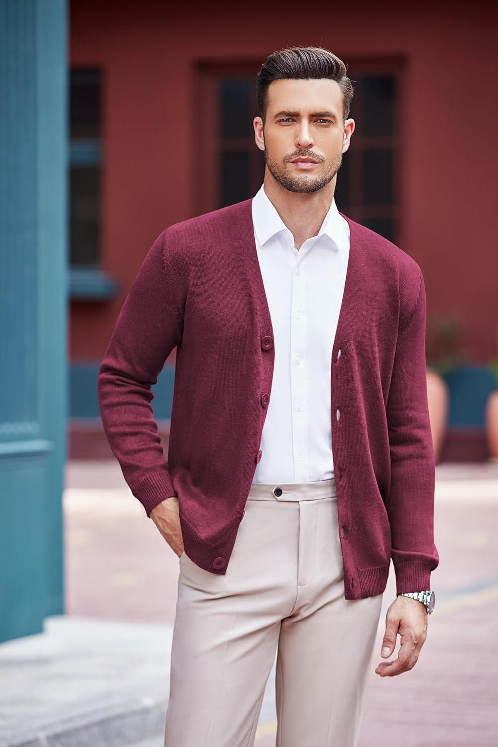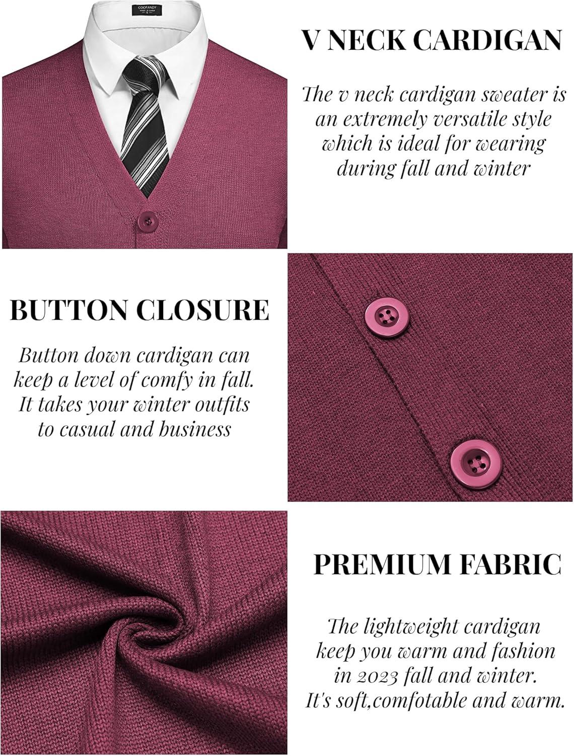 COOFANDY Men’s V Neck Cardigan Sweater Casual Lightweight Button Down Knitted Cardigan Sweater(Wine Red)