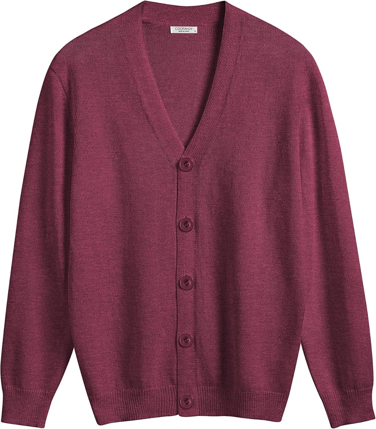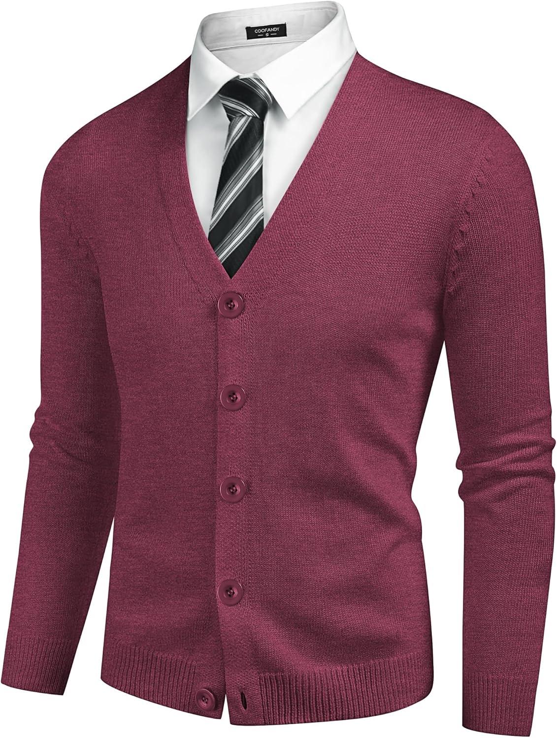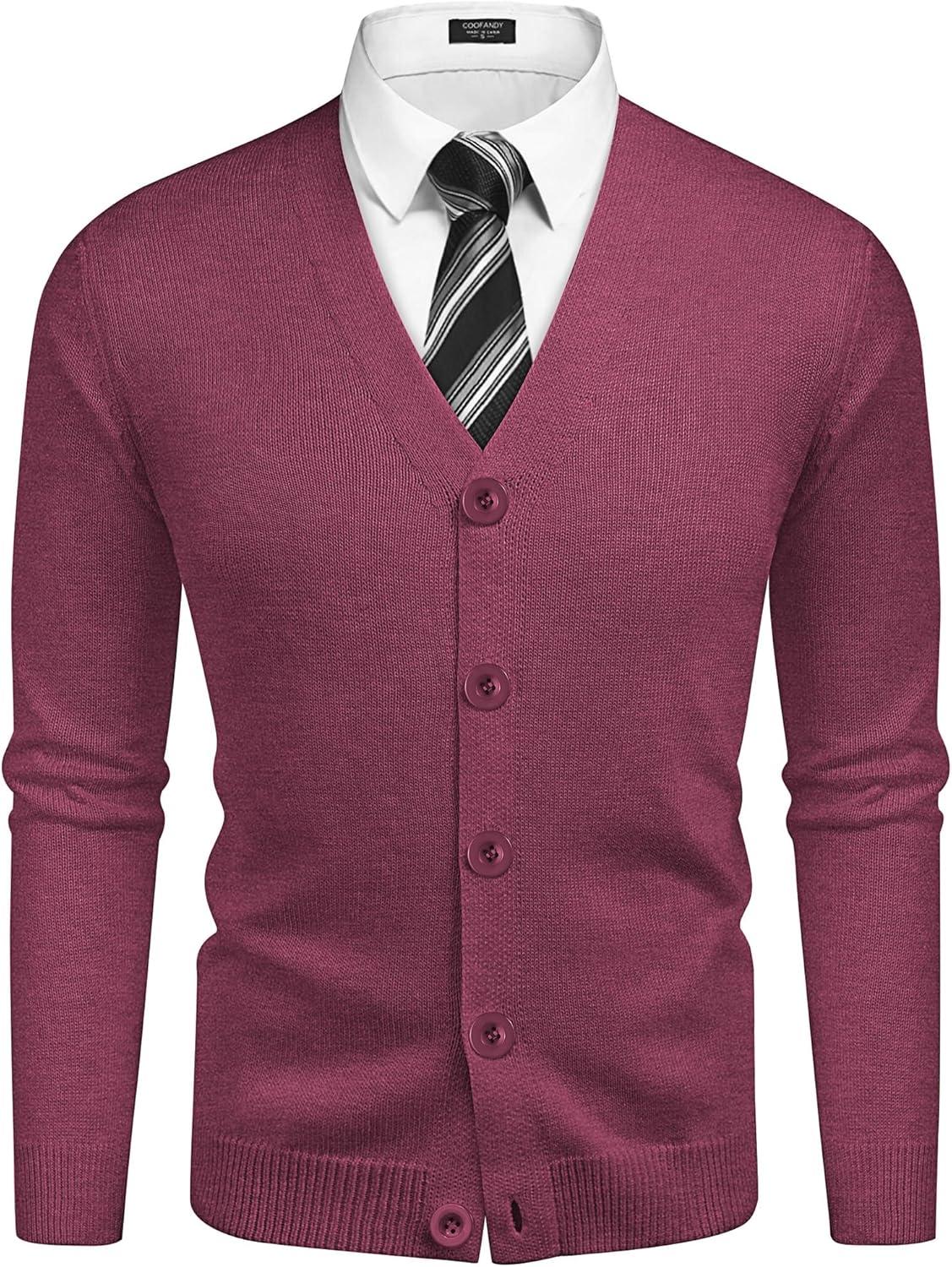 COOFANDY Men’s V Neck Cardigan Sweater Casual Lightweight Button Down Knitted Cardigan Sweater(Wine Red)