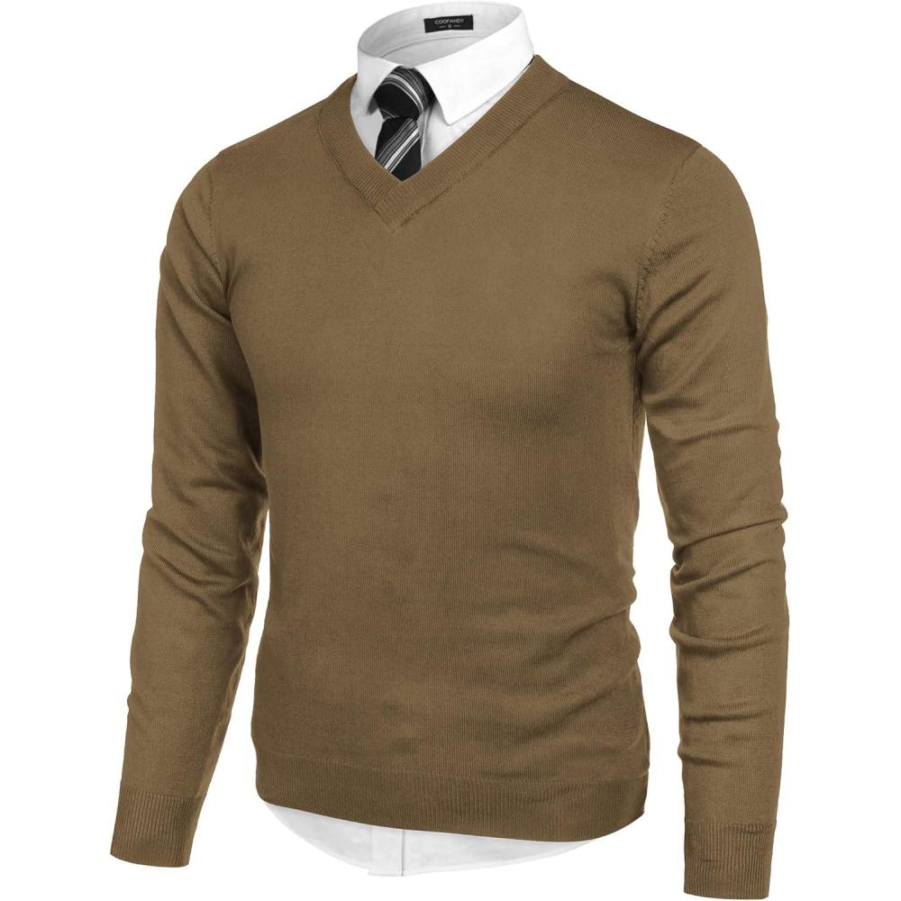 COOFANDY Mens V Neck Dress Sweater Knit Long Sleeve Slim Fit Sweaters Fashion Pullover Sweater(Brown)