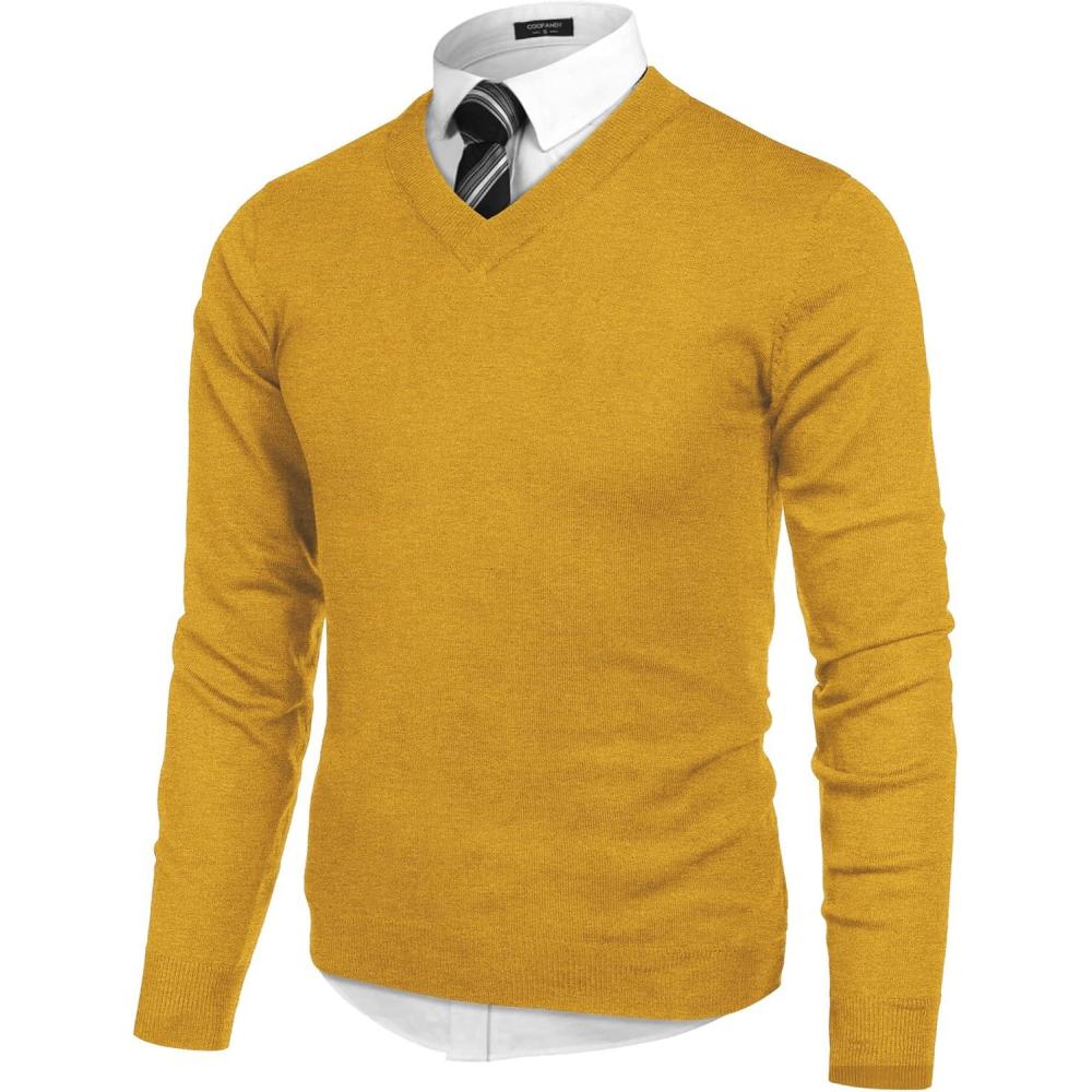 COOFANDY Mens V Neck Dress Sweater Knit Long Sleeve Slim Fit Sweaters Fashion Pullover Sweater(Yellow)