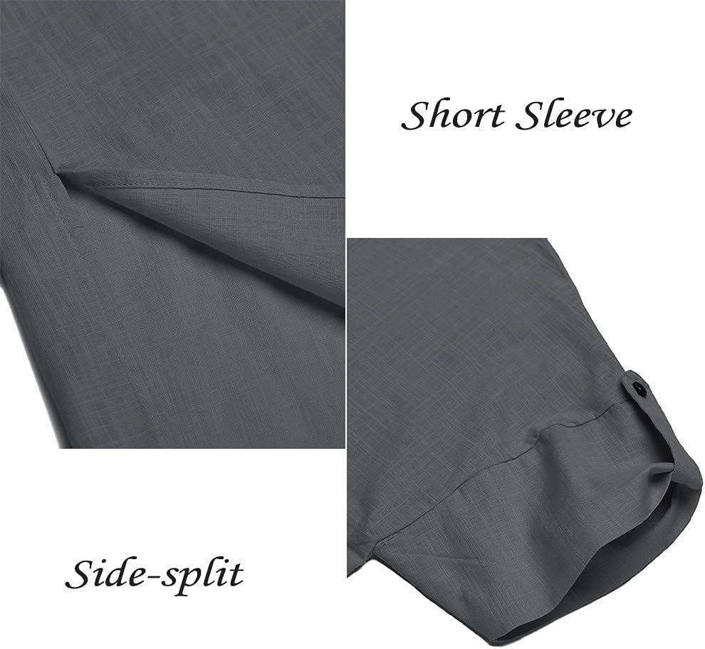 COOFANDY Men’s V-Neck Linen Robe Short Sleeve Kaftan Thobe Long Gown Casual Shirt for Beach, Summer(Dark Grey)