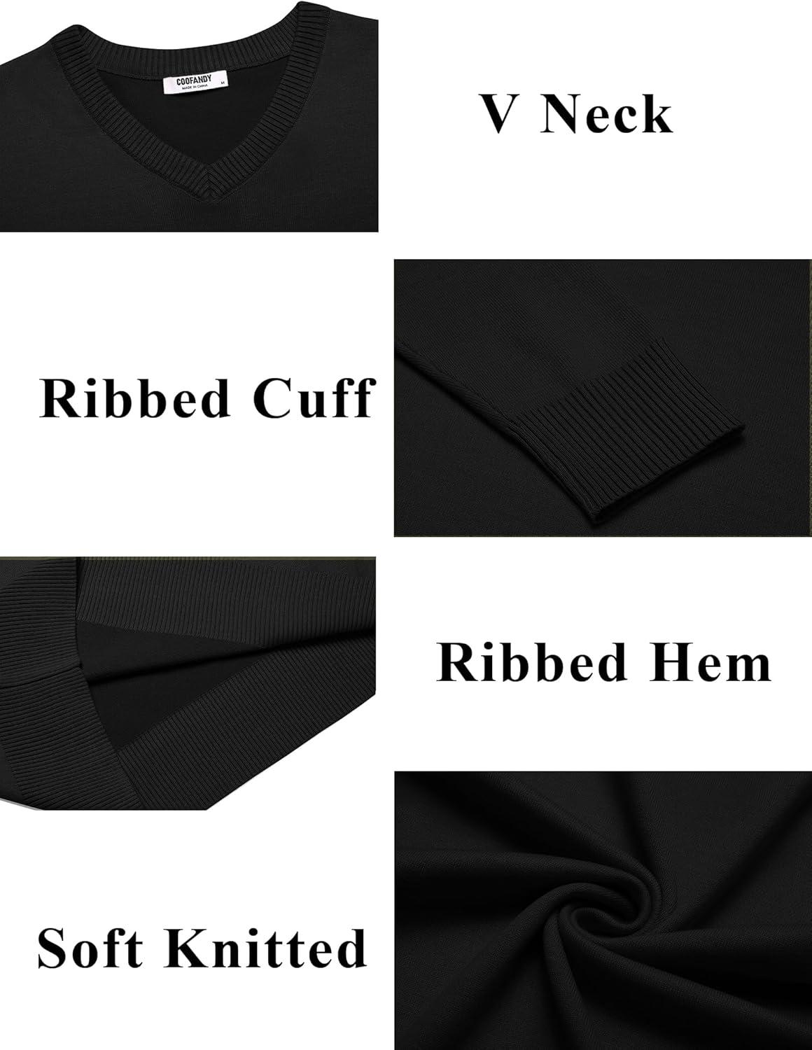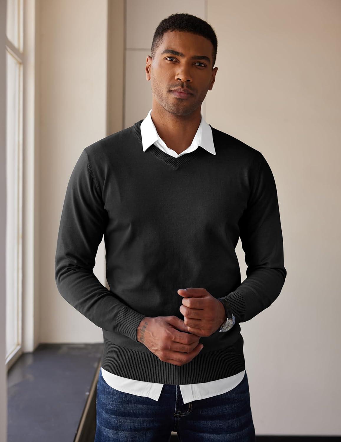 COOFANDY Men’s V Neck Sweater Lightweight Knitted Pullover Sweaters(Black)