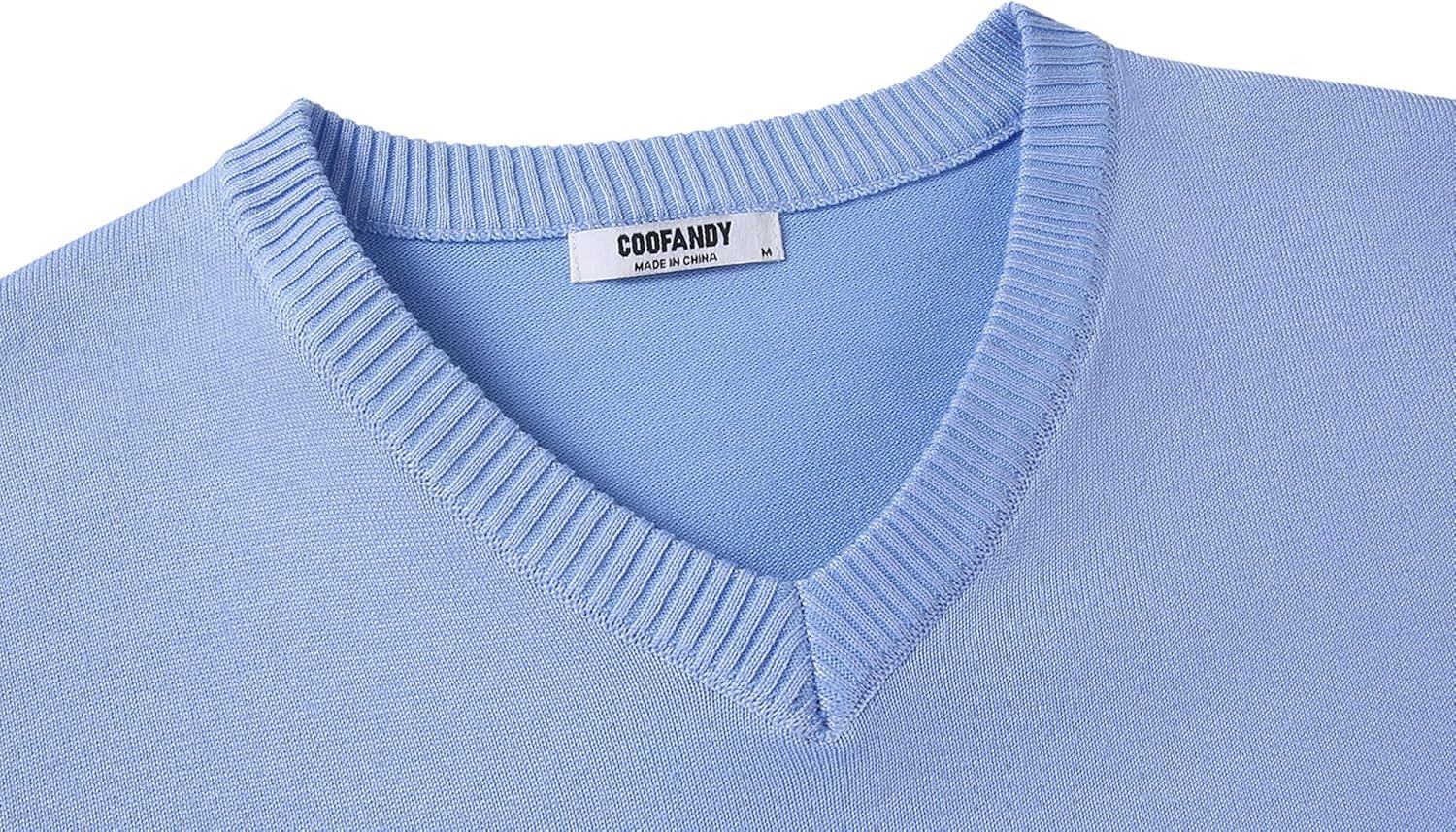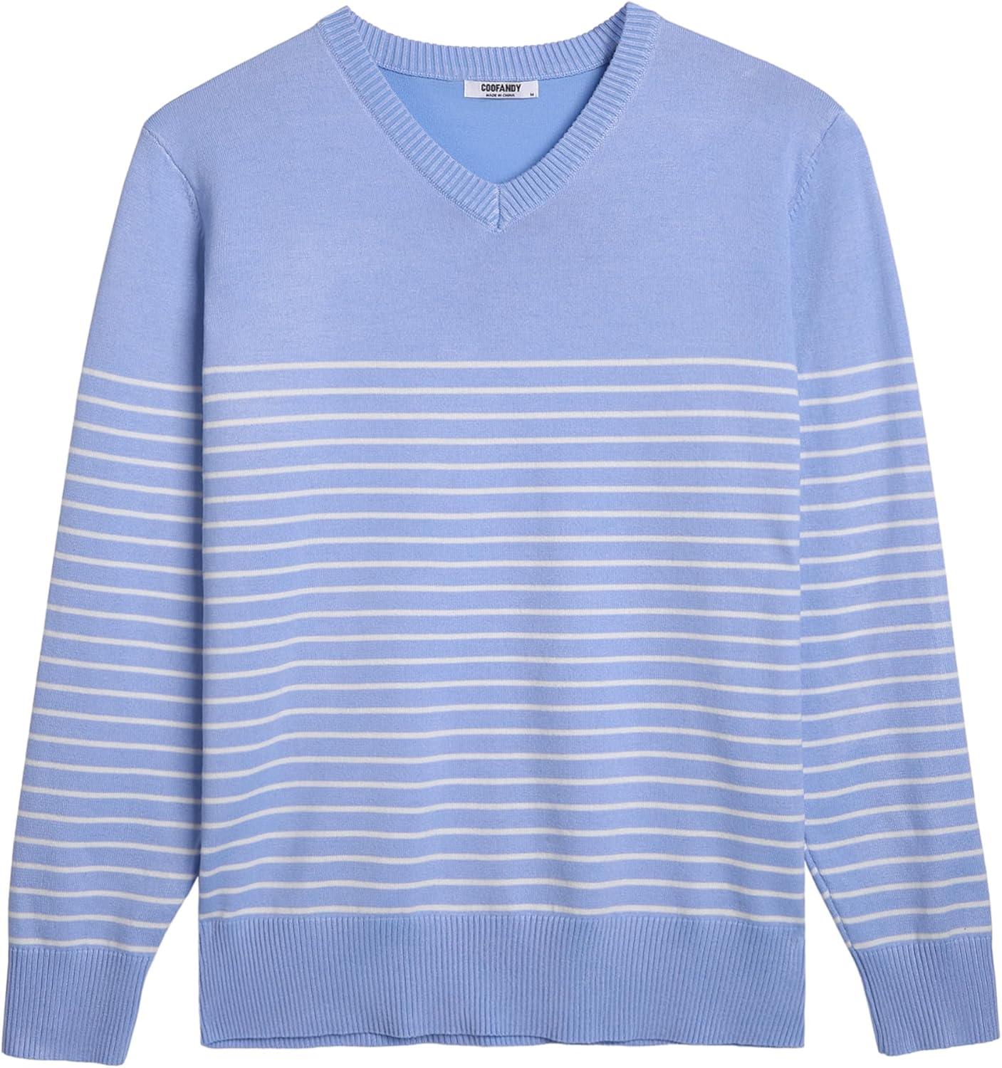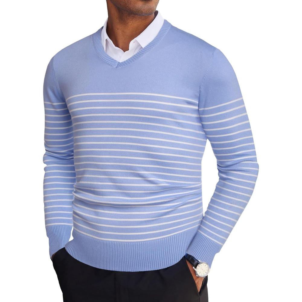 COOFANDY Men’s V Neck Sweater Lightweight Knitted Pullover Sweaters(Blue-striped)