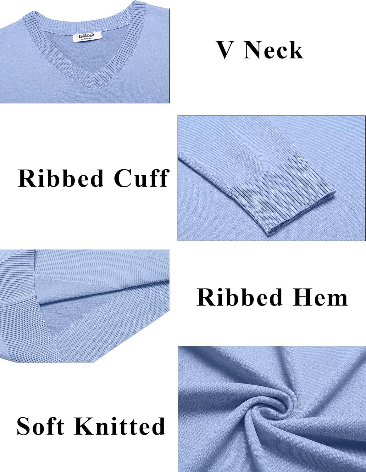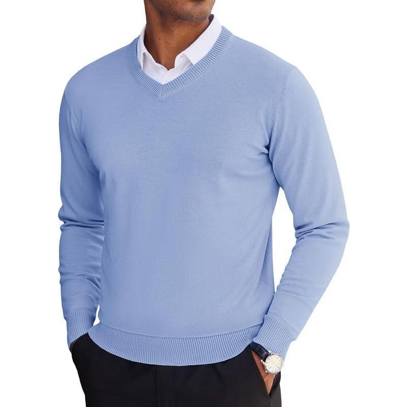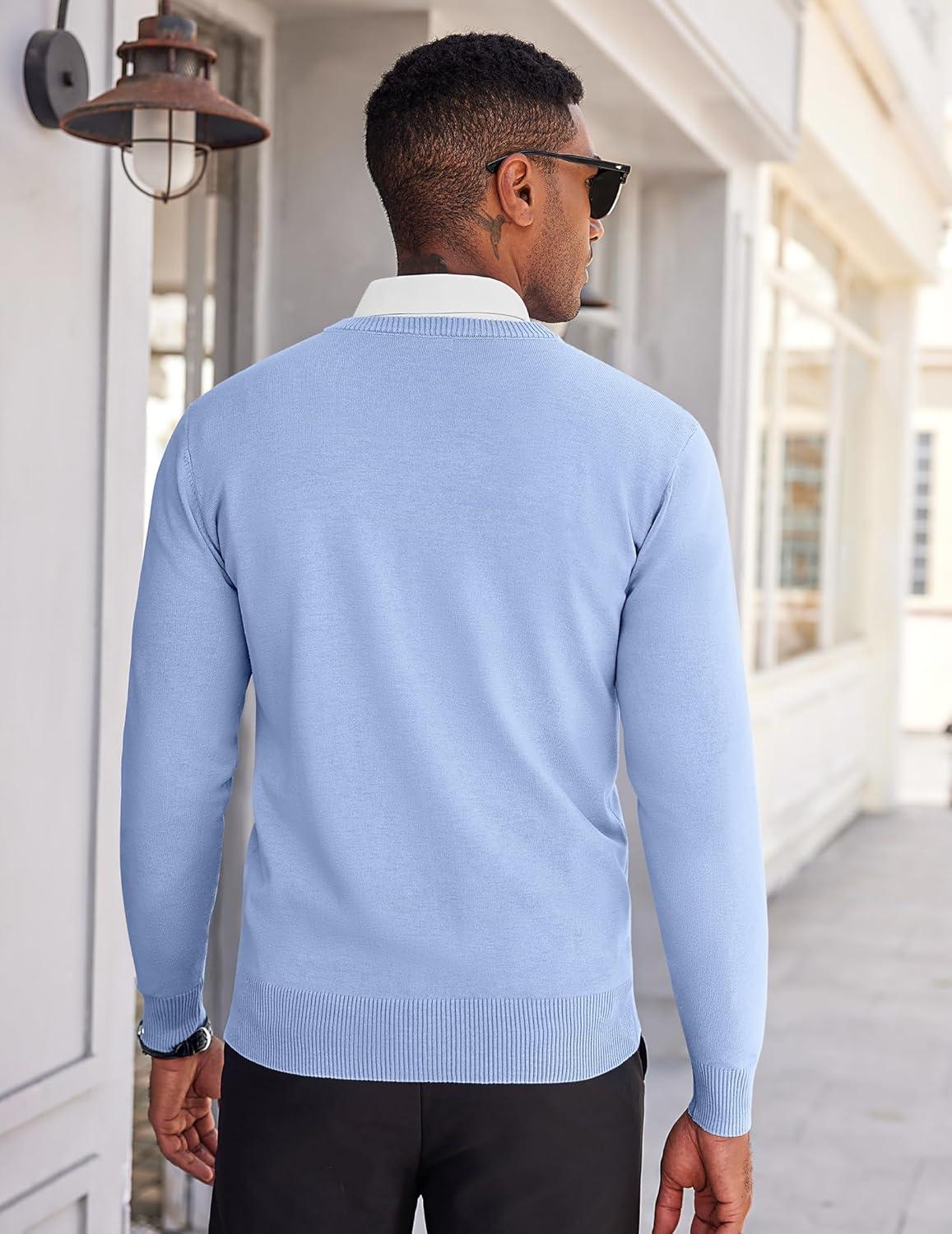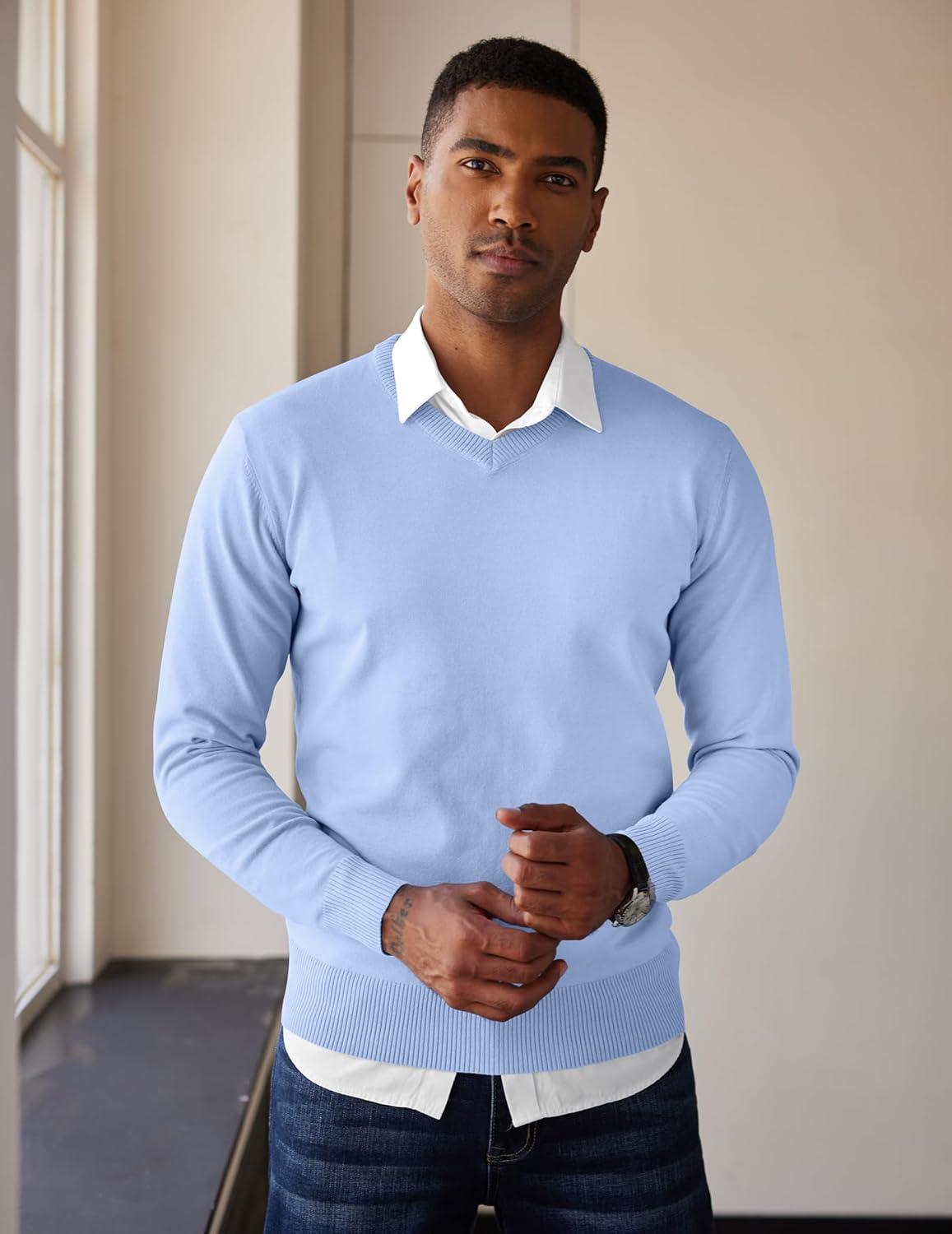 COOFANDY Men’s V Neck Sweater Lightweight Knitted Pullover Sweaters(Light Blue)
