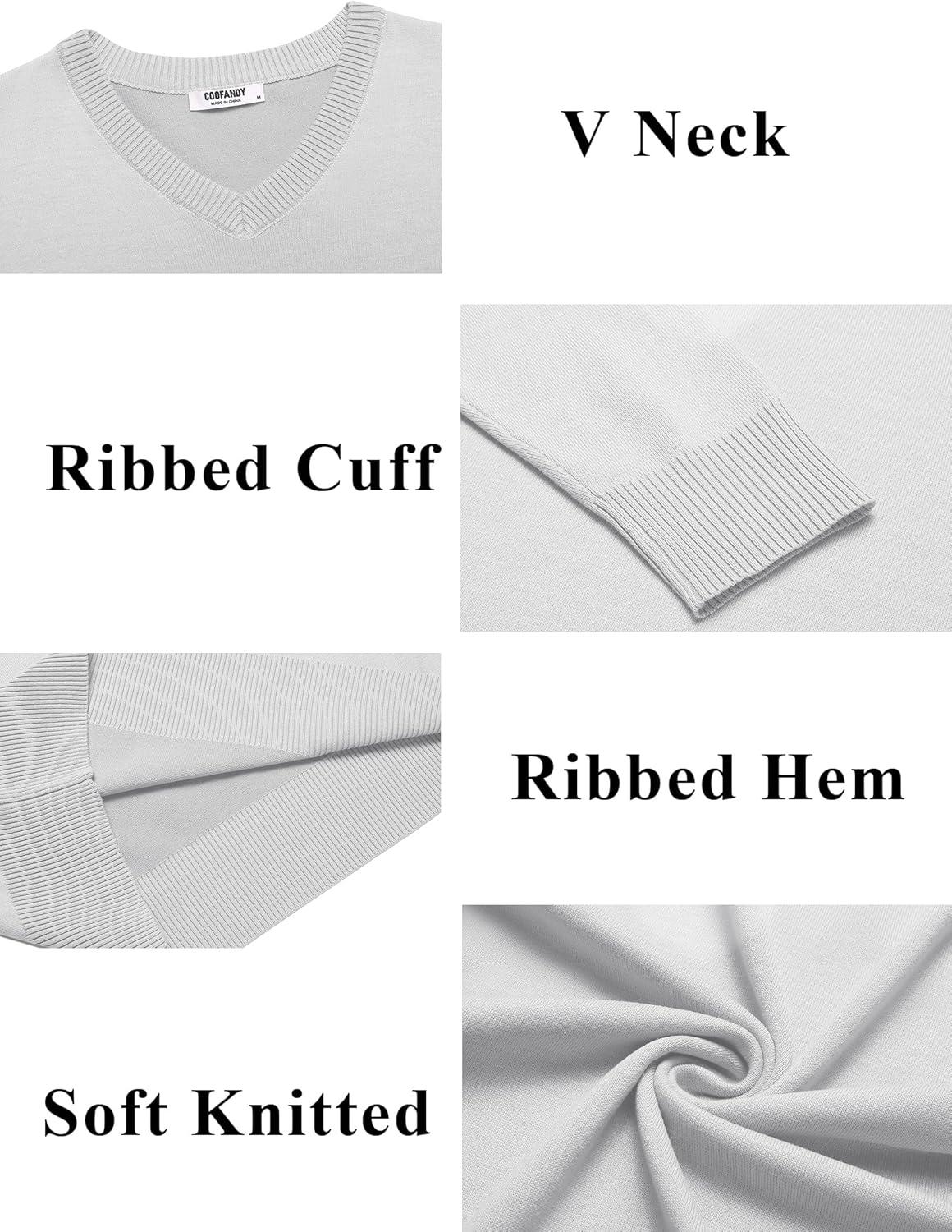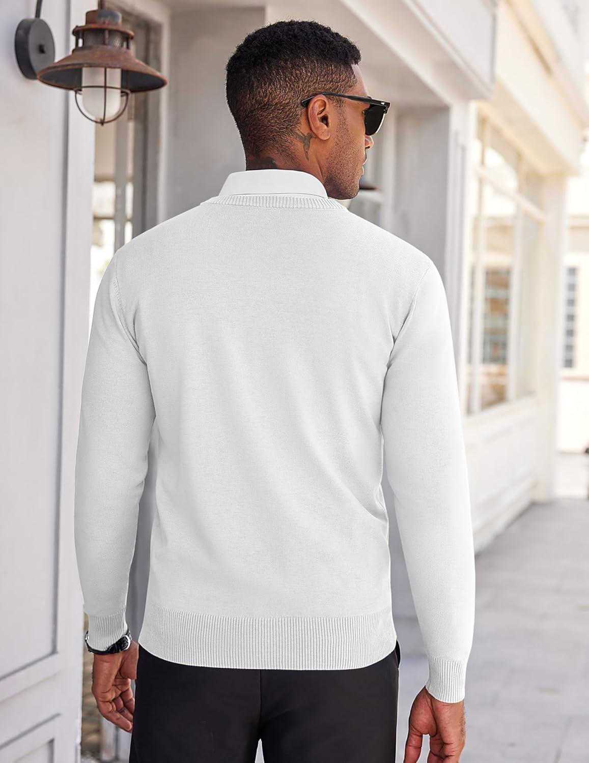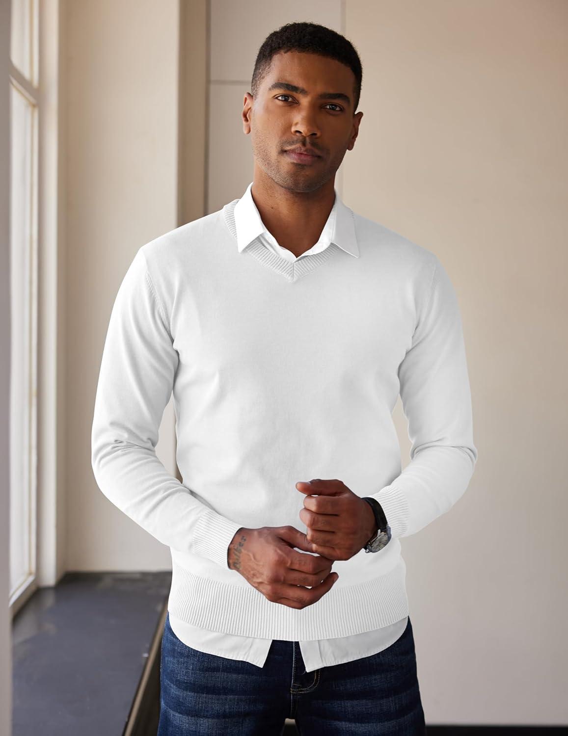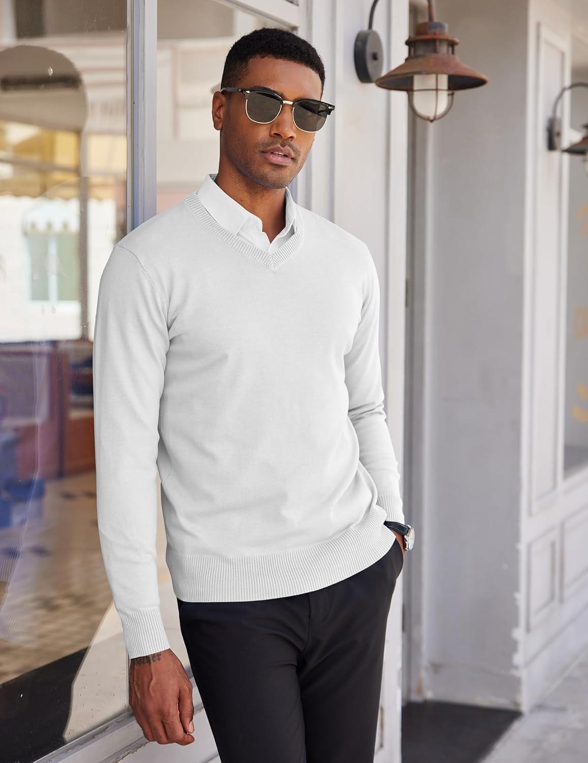 COOFANDY Men’s V Neck Sweater Lightweight Knitted Pullover Sweaters(White)