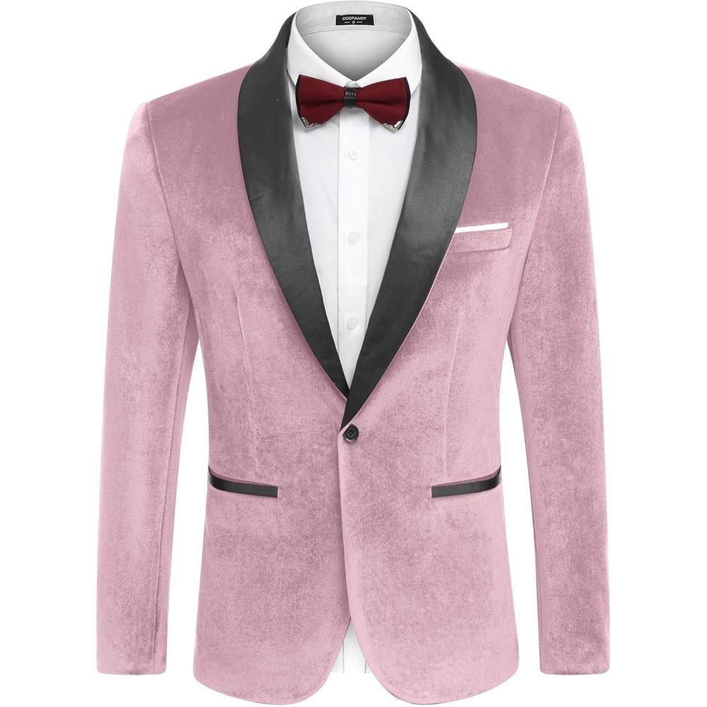 COOFANDY Men’s Velvet Tuxedo One Button Jacket Dinner Prom Wedding Blazer Jacket(Pink)