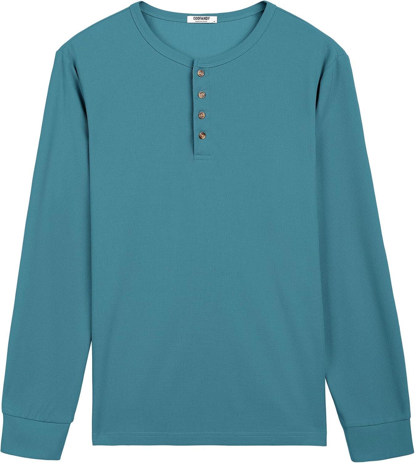 COOFANDY Mens Waffle Henley Shirts Long Sleeve Casual T-Shirt Basic Lightweight Pullover Tees(Peacock Blue)