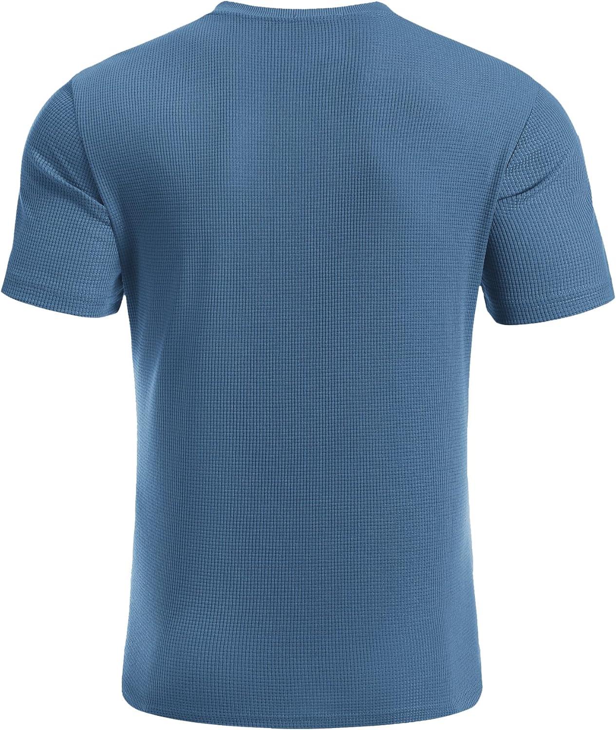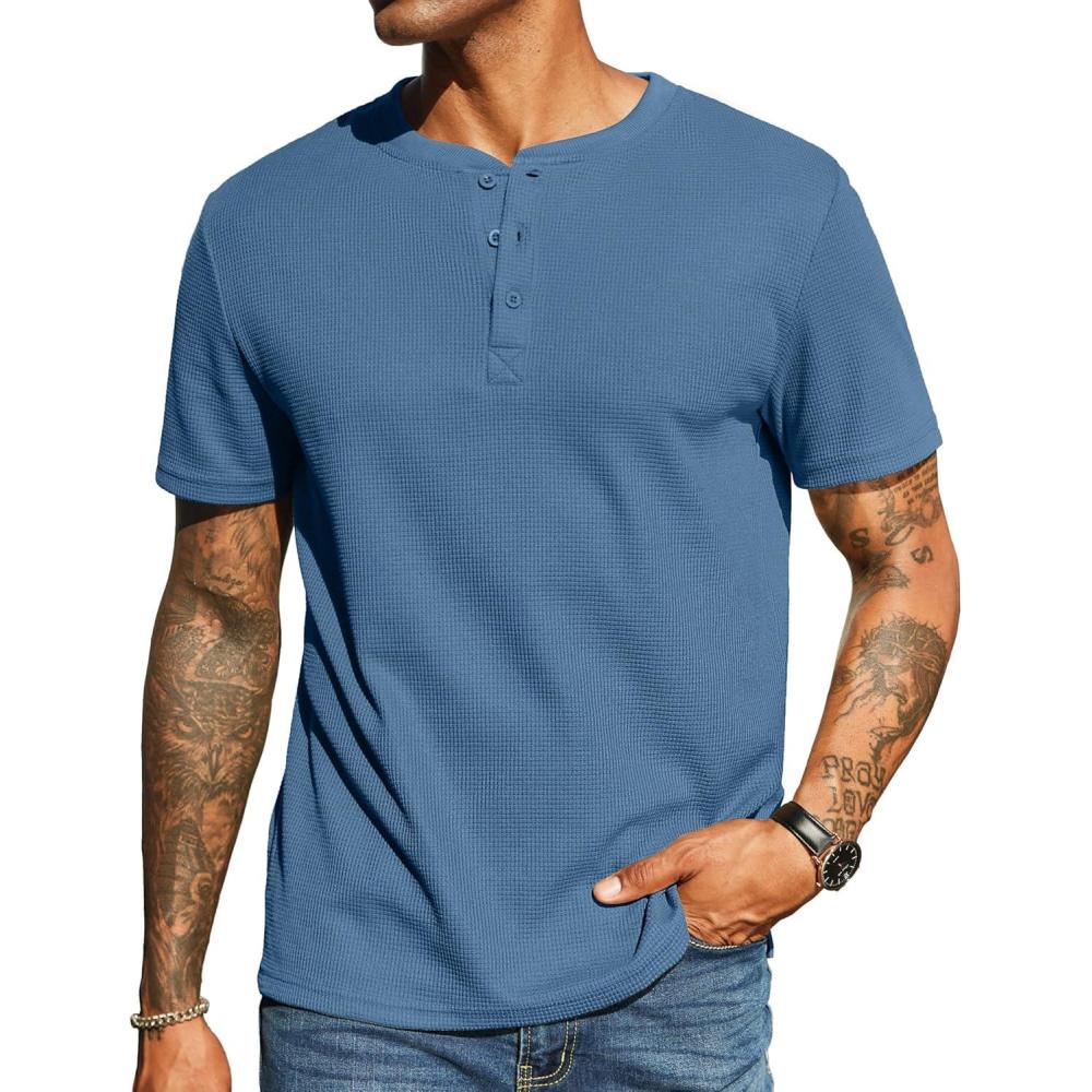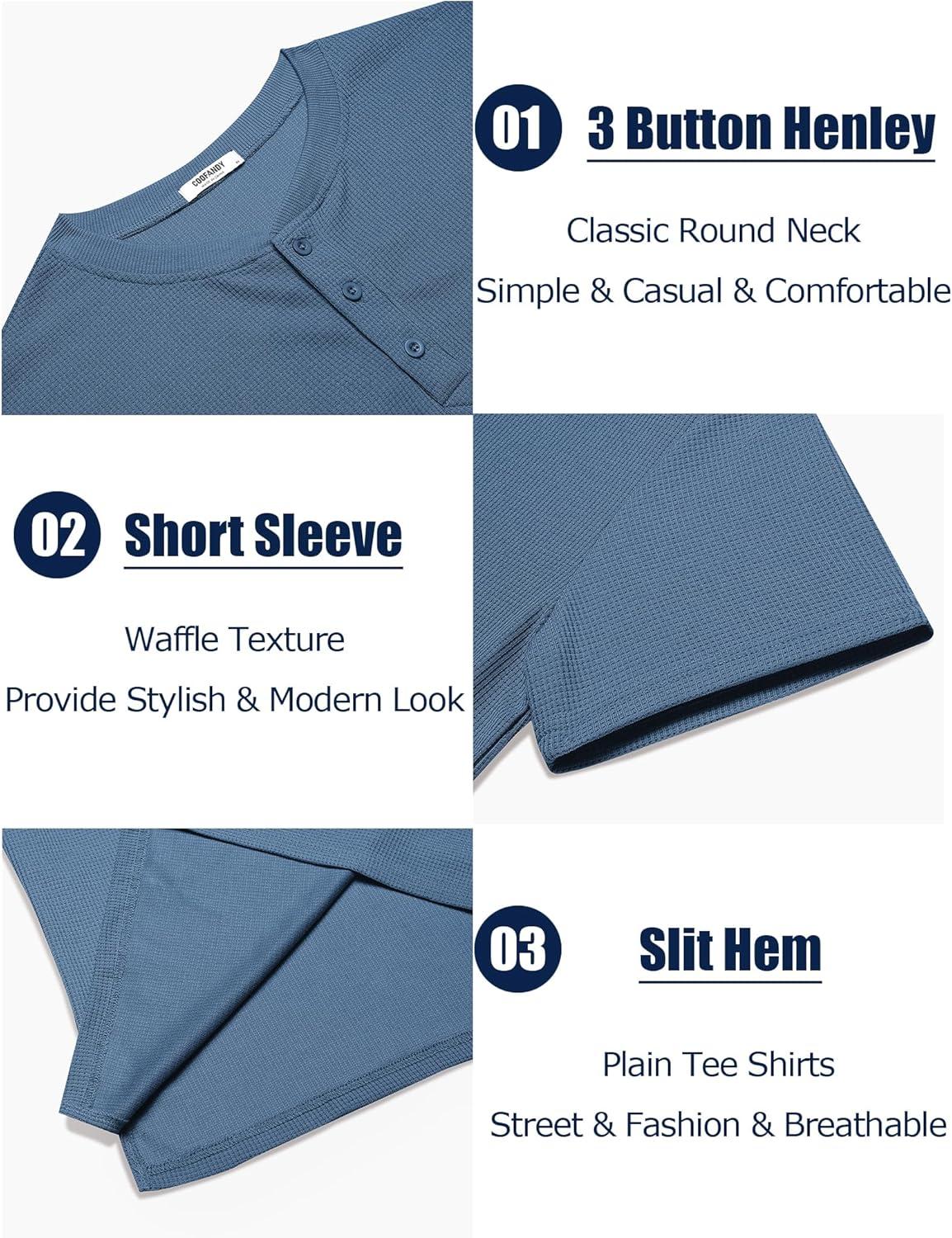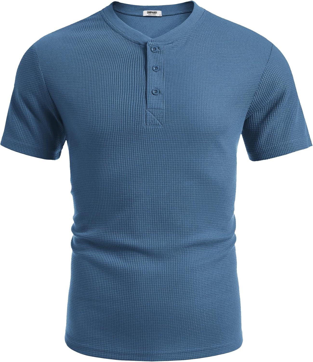COOFANDY Men’s Waffle Henley Short Sleeve Textured T Shirt Casual Button Tee Shirts Heavyweight Henley Summer Top(Blue)