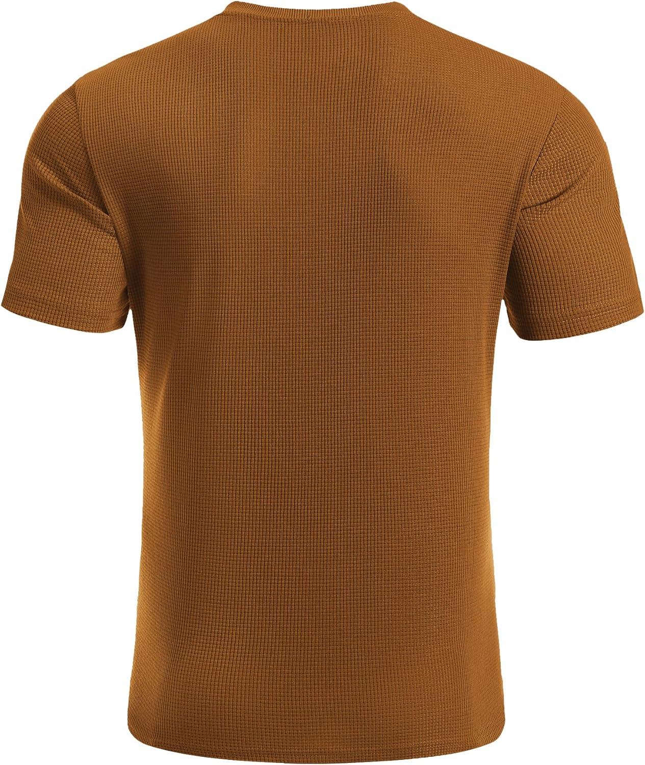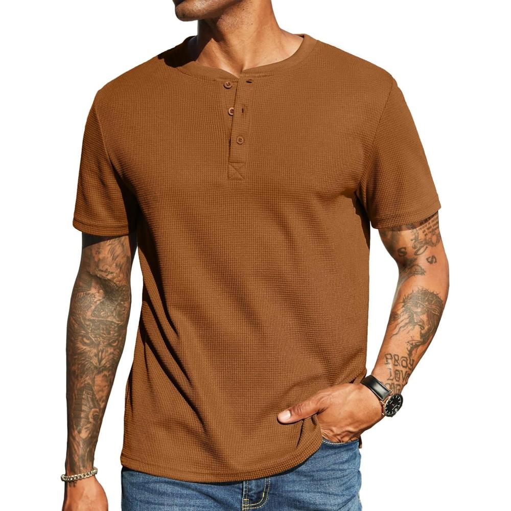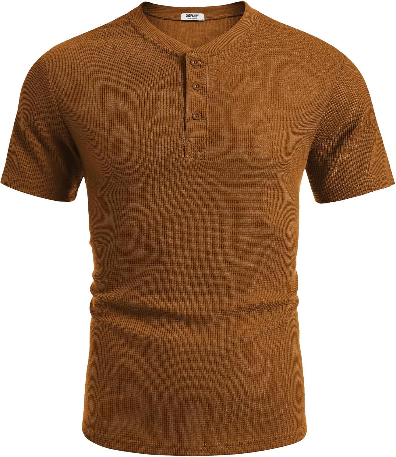 COOFANDY Men’s Waffle Henley Short Sleeve Textured T Shirt Casual Button Tee Shirts Heavyweight Henley Summer Top(Light Brown)