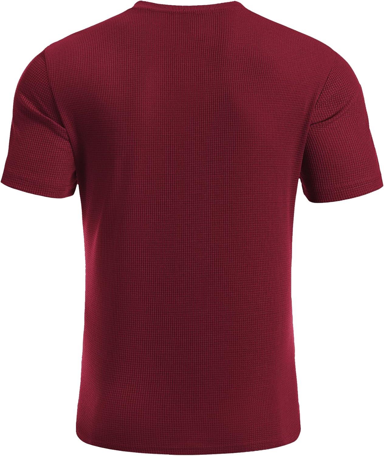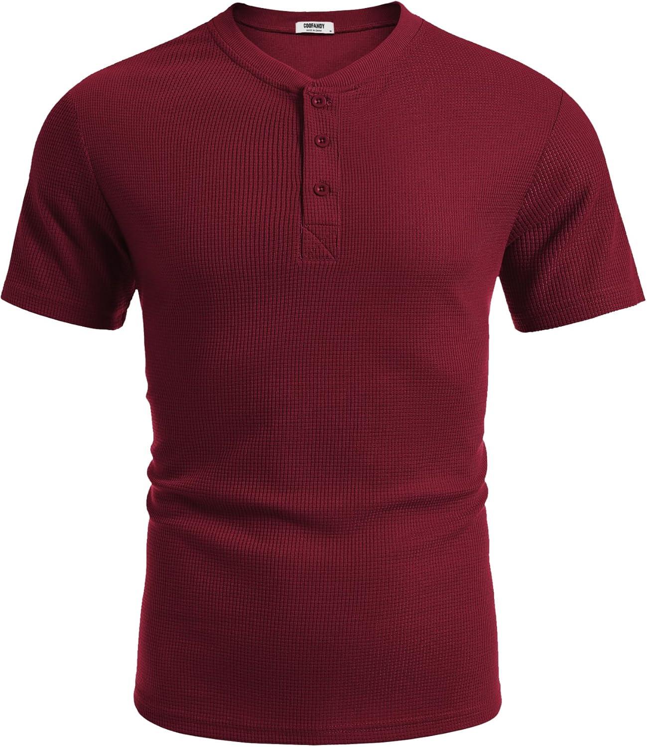 COOFANDY Men’s Waffle Henley Short Sleeve Textured T Shirt Casual Button Tee Shirts Heavyweight Henley Summer Top(Wine Red)