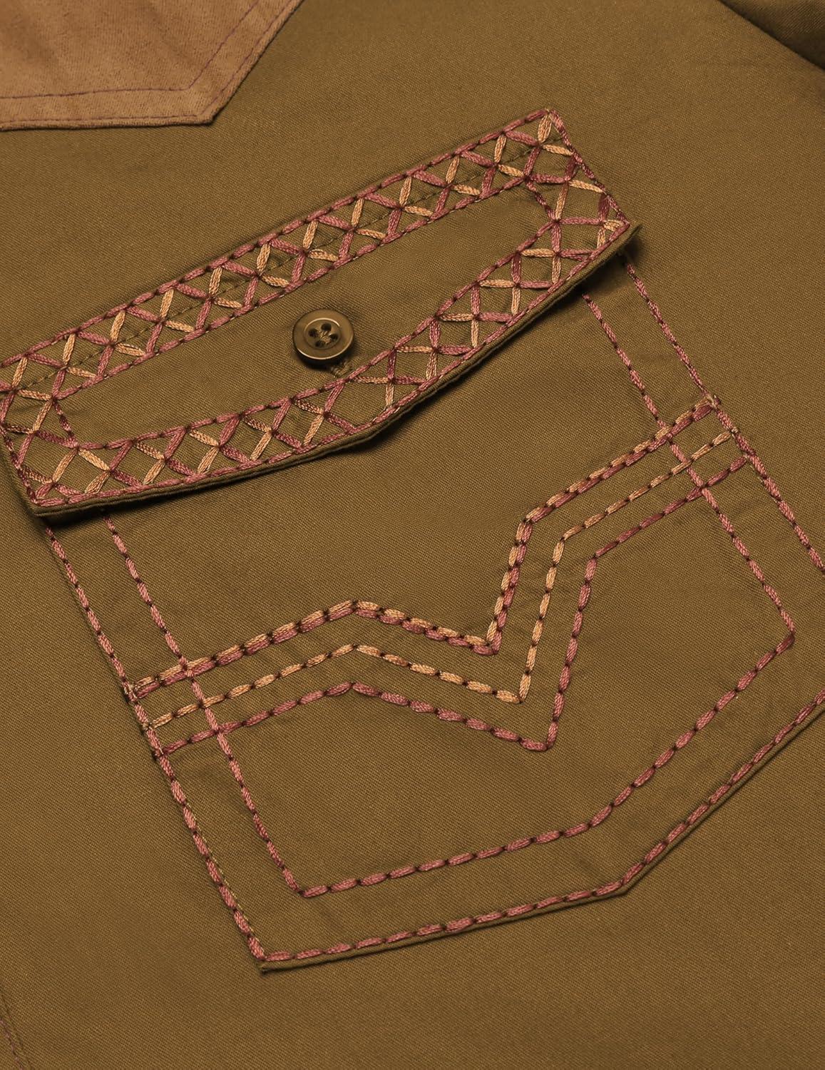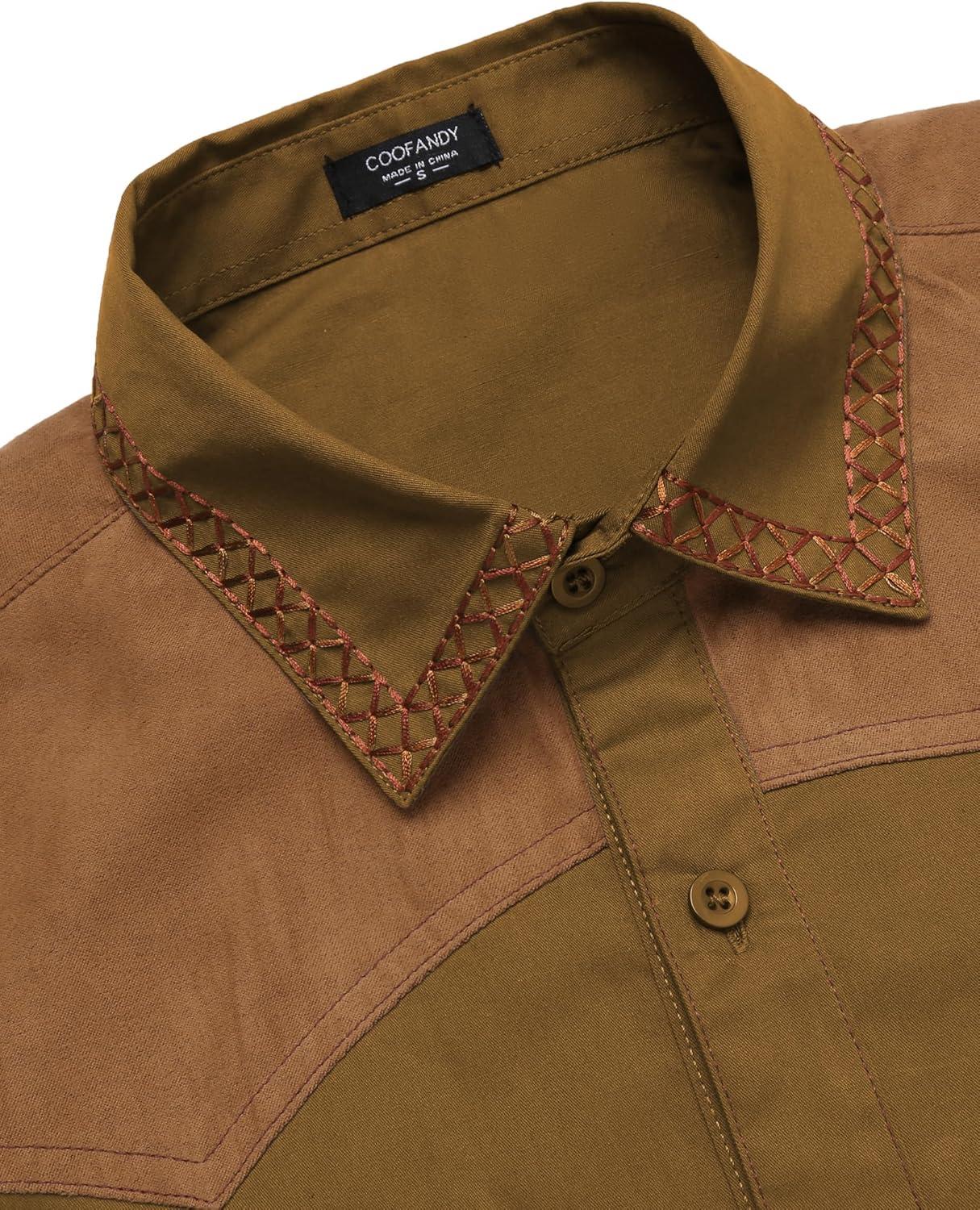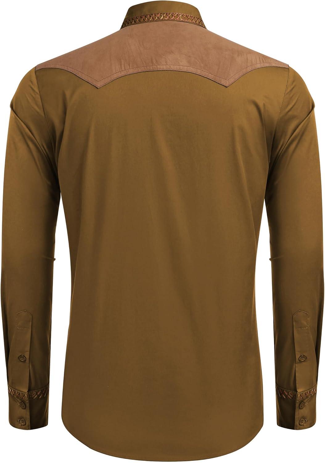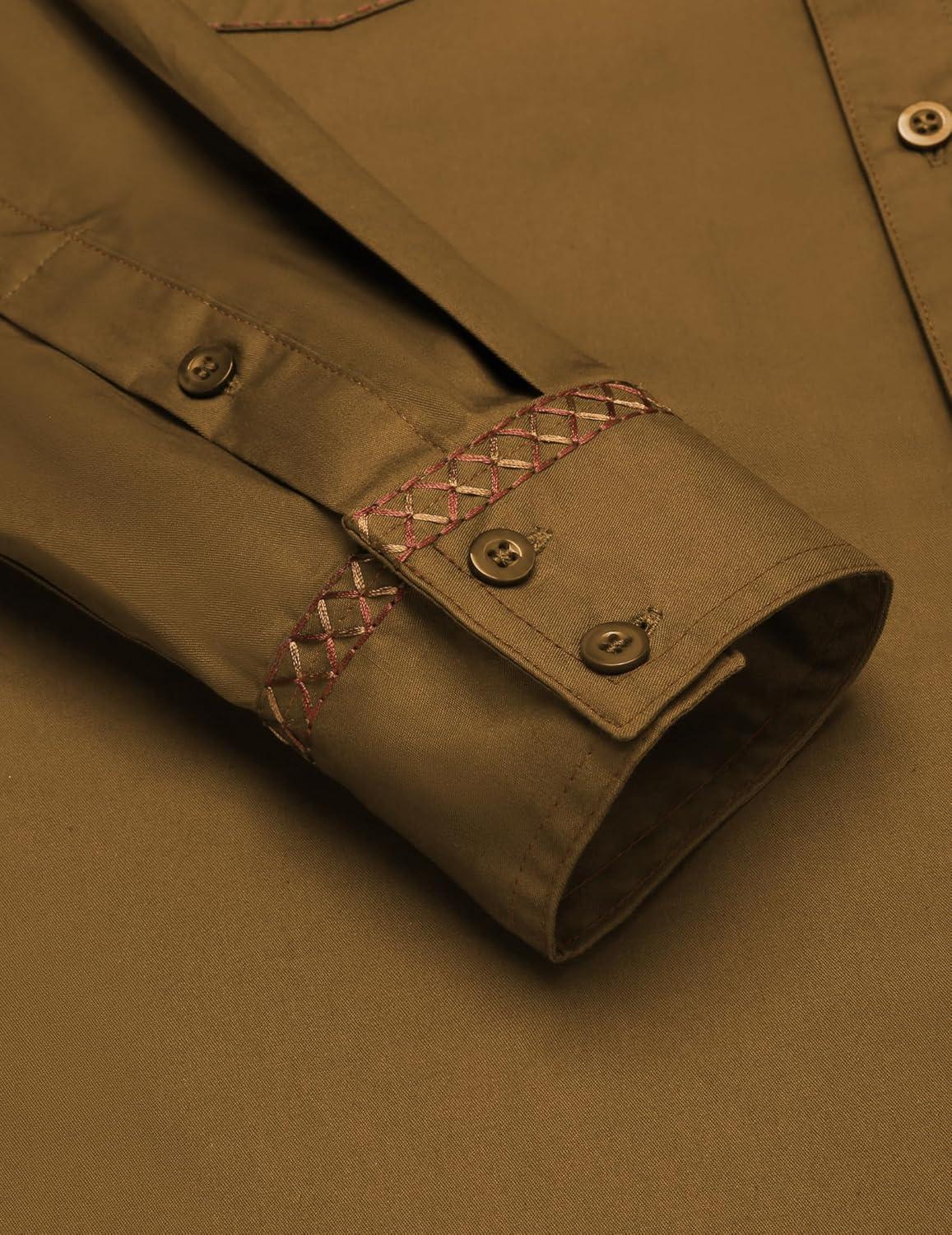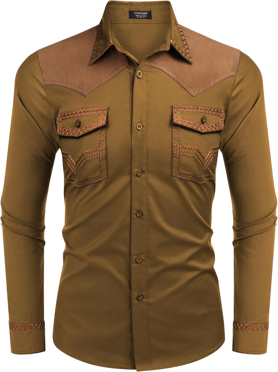 COOFANDY Men’s Western Cowboy Shirt Embroidered Long Sleeve Slim Fit Casual Cotton Button Down Hippie Shirts with Pockets(Brown)