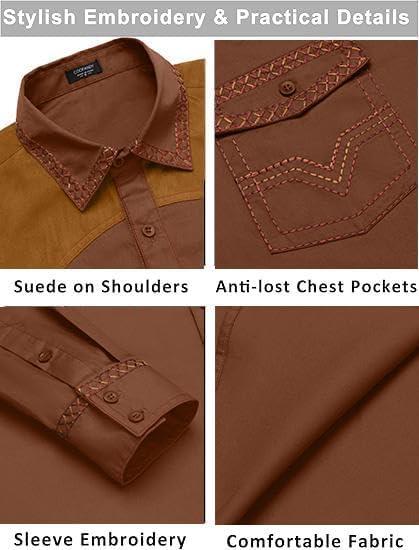 COOFANDY Men’s Western Cowboy Shirt Embroidered Long Sleeve Slim Fit Casual Cotton Button Down Hippie Shirts with Pockets(Coffee)