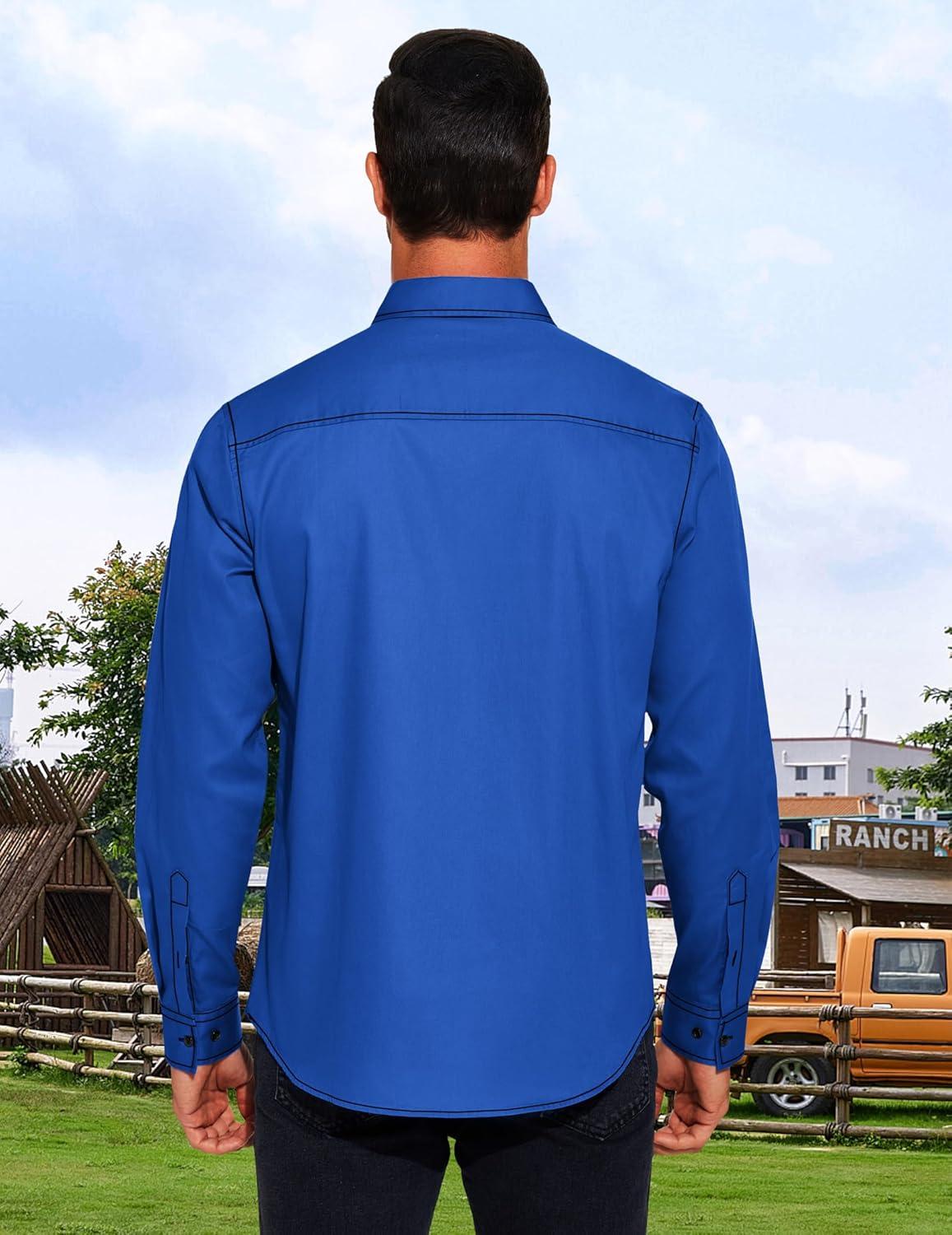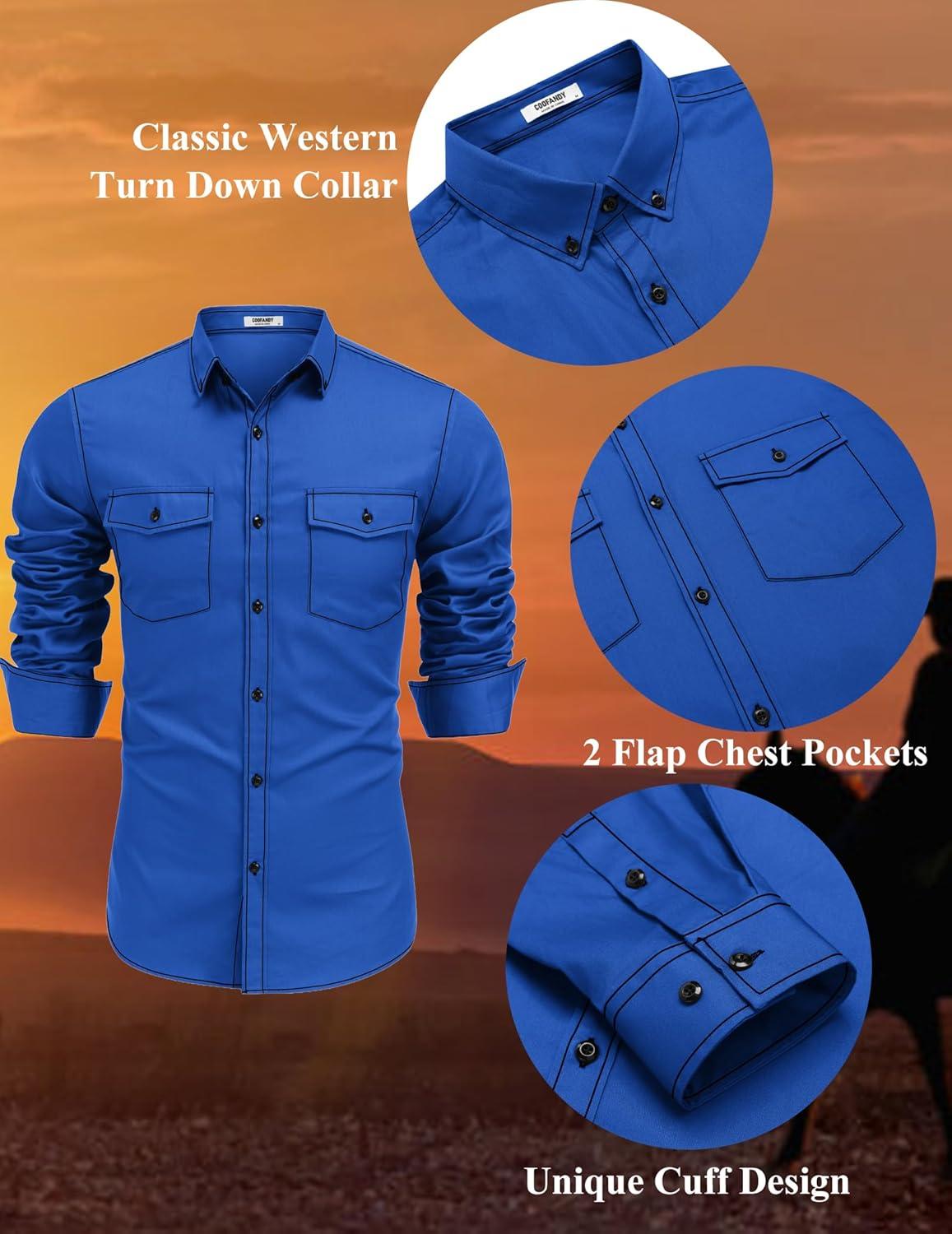COOFANDY Mens Western Cowboy Shirts Cotton Long Sleeve Shirts with Two Pockets Embroidered(Royal Blue)
