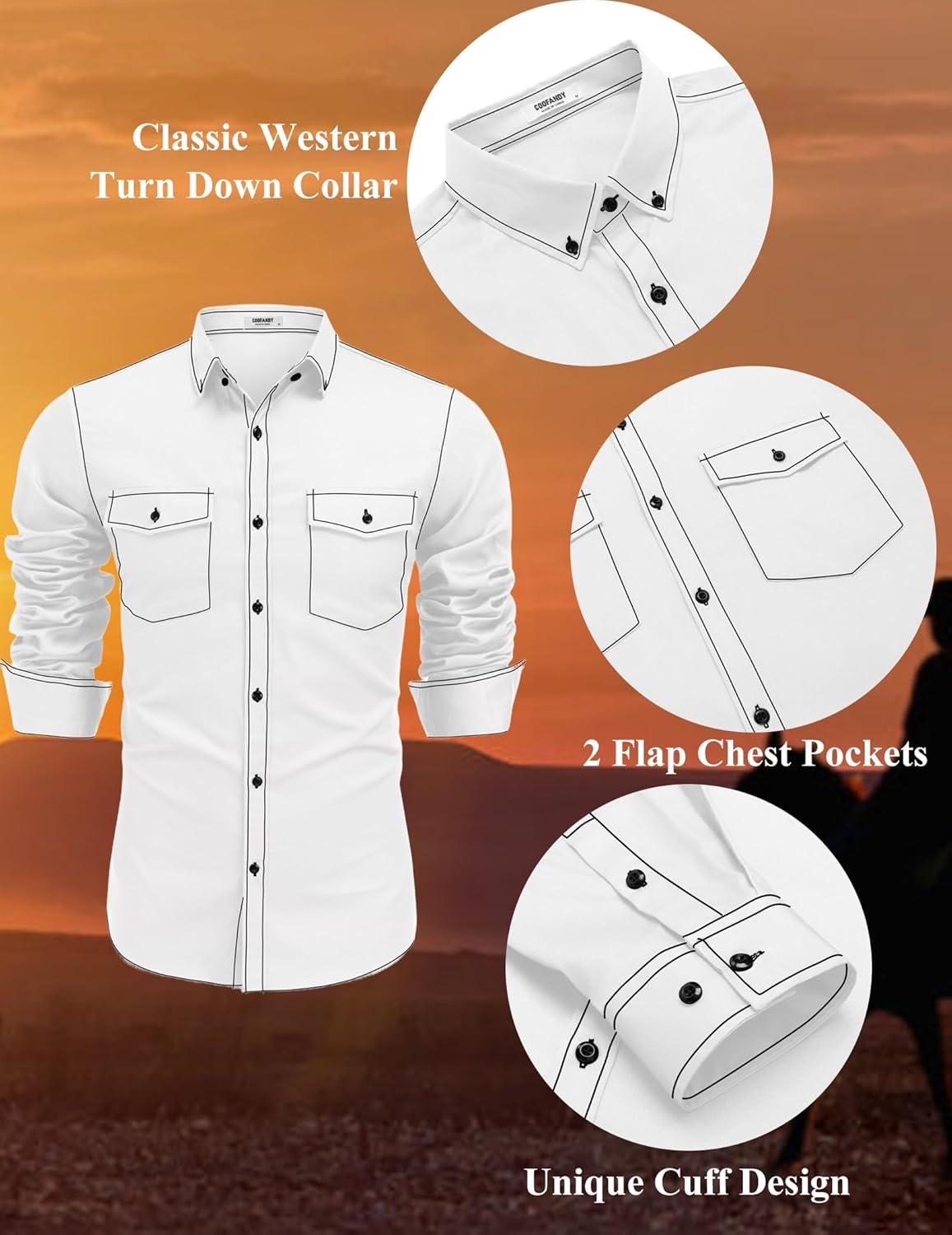 COOFANDY Mens western cowboy shirt casual long sleeve button down shirt with two pockets vintage cowboy button up shirts lightweight summer beach clothes for men autumn evening