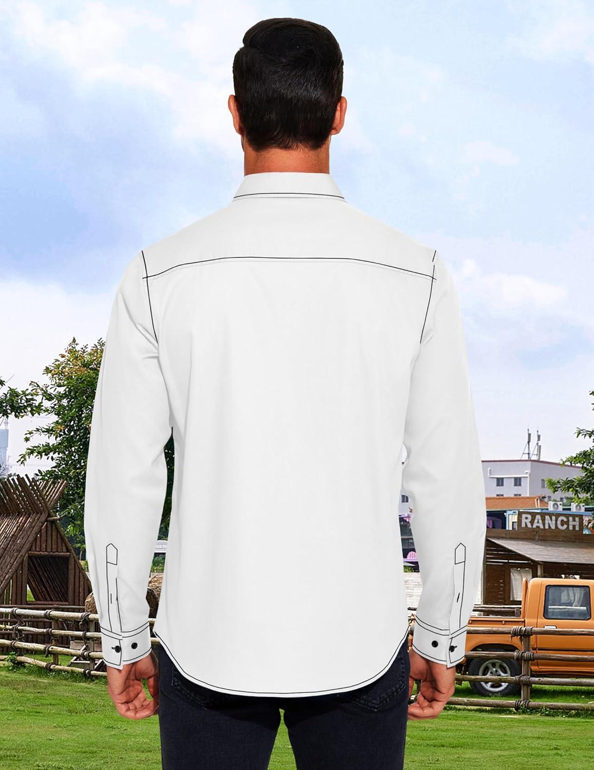 COOFANDY Mens Western Cowboy Shirts Cotton Long Sleeve Shirts with Two Pockets Embroidered(White)