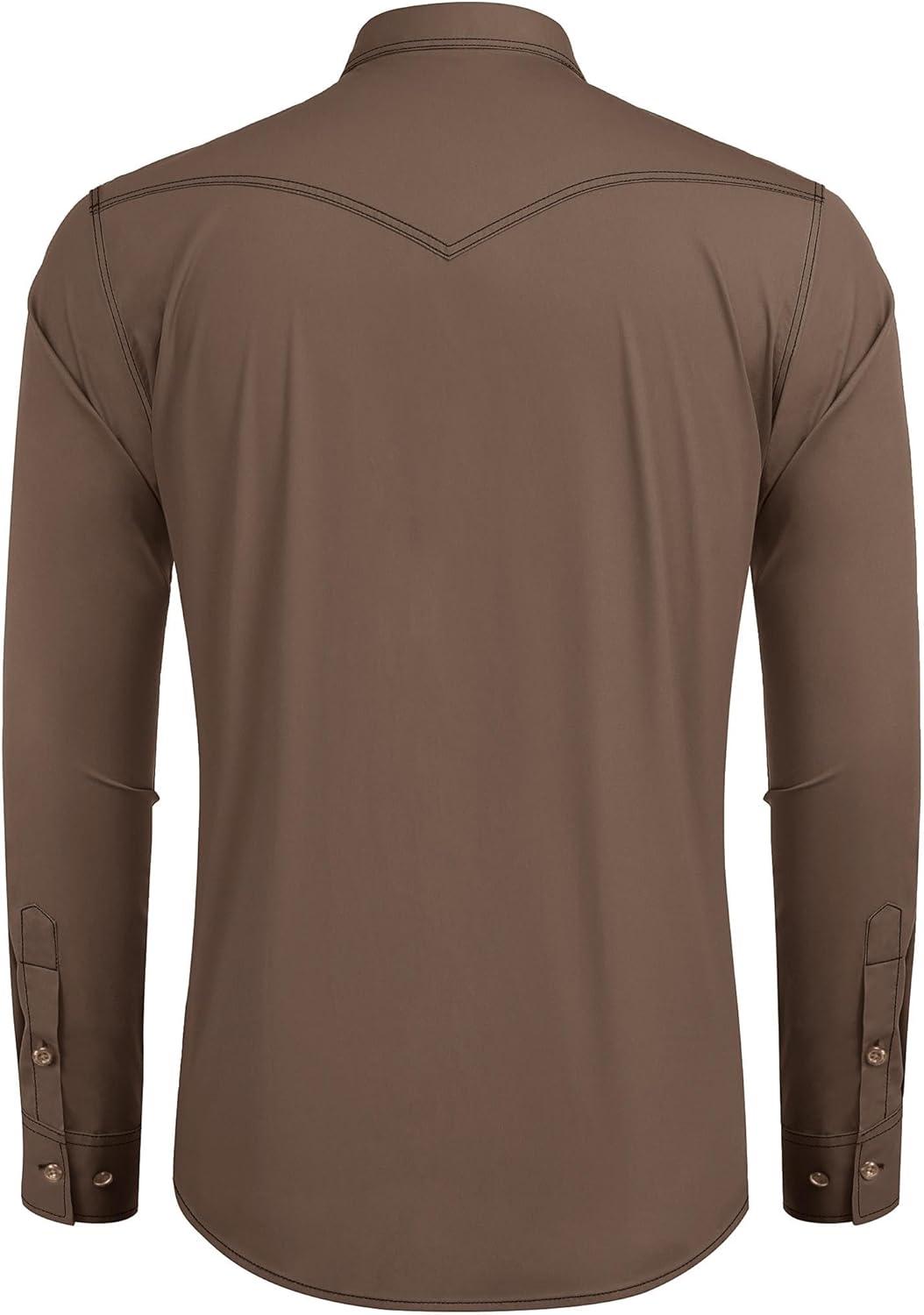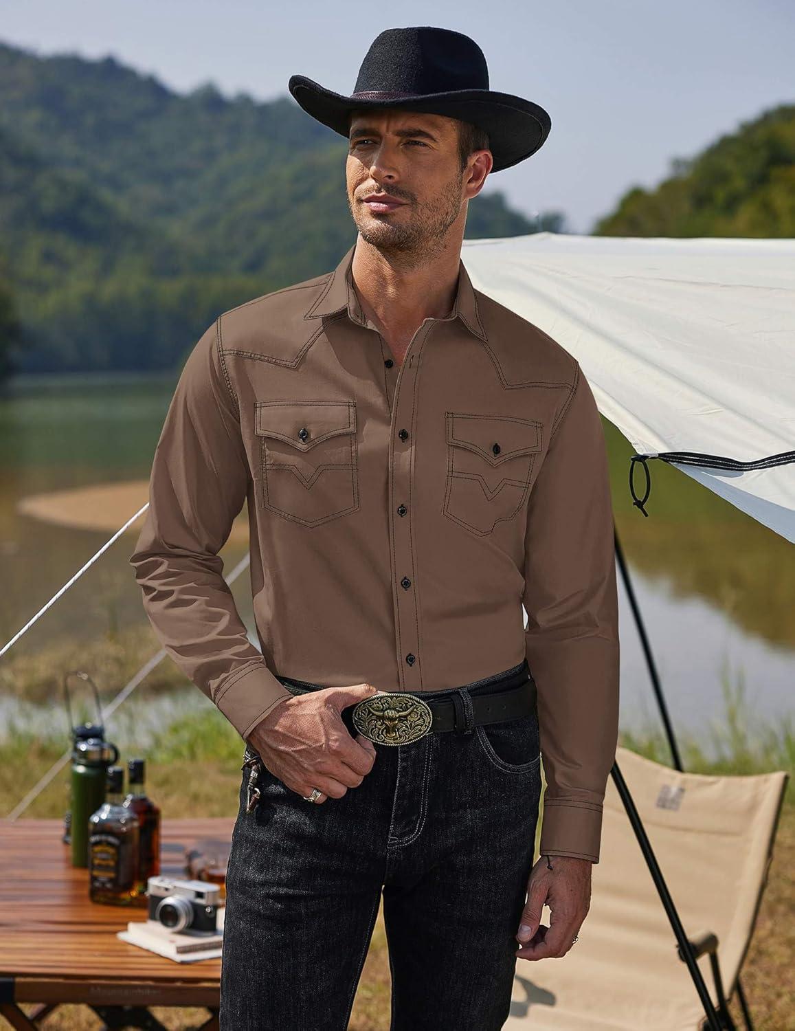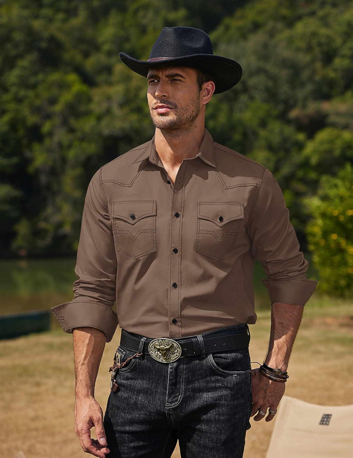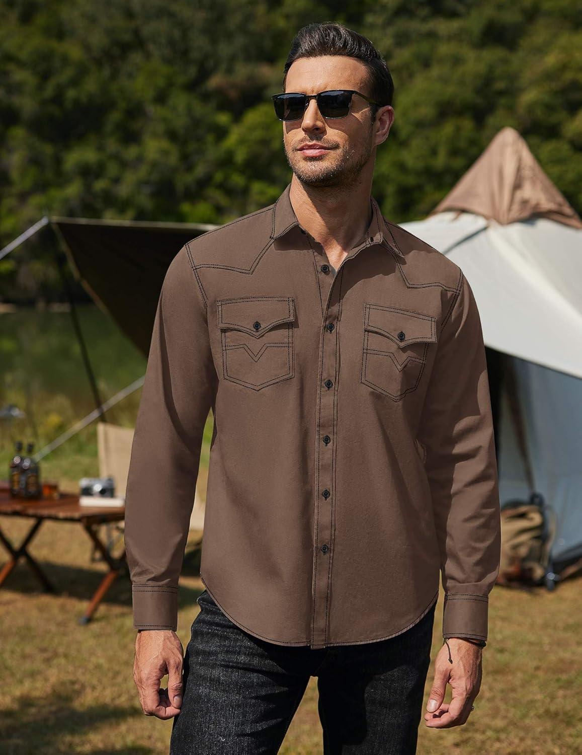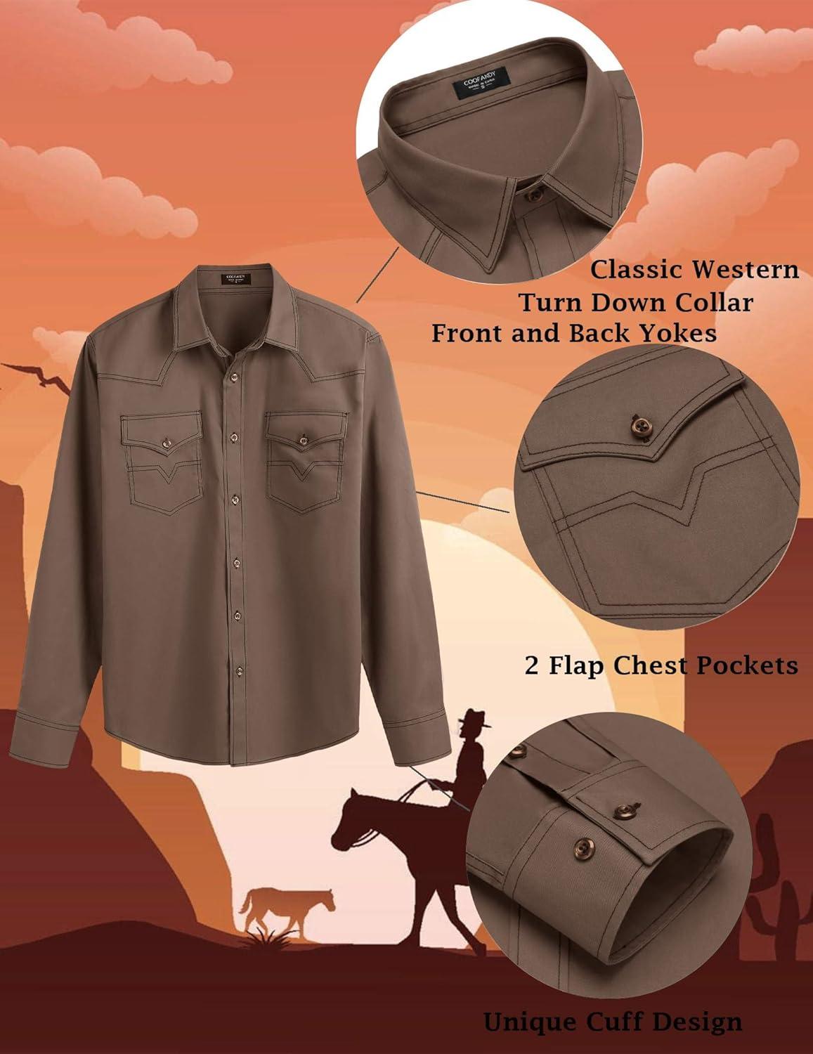 COOFANDY Men’s Western Cowboy Shirts Long Sleeve Cotton Casual Button Down Work Shirt with Pockets(Brown & Black)