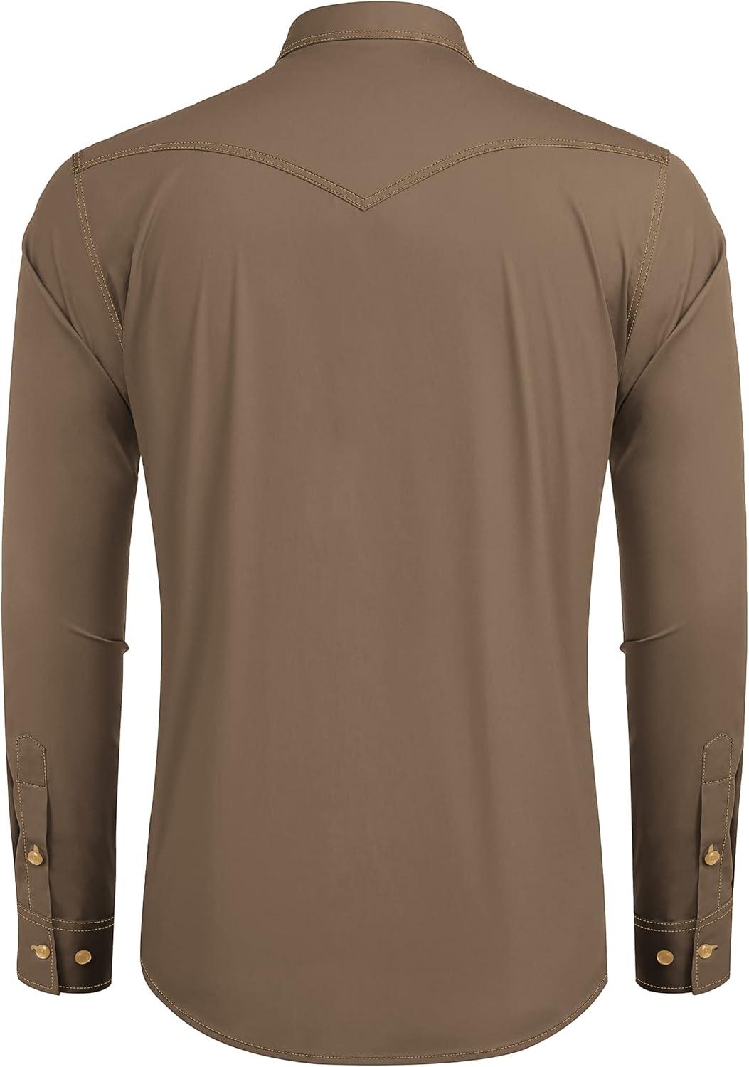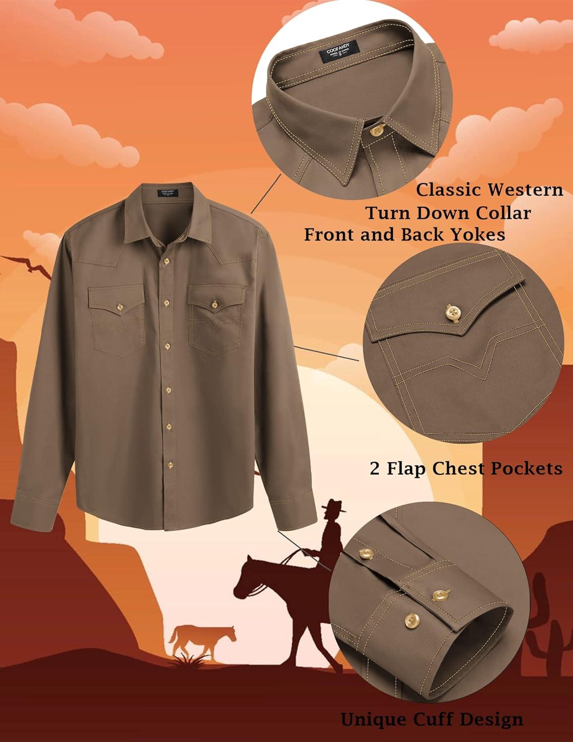 COOFANDY Men’s Western Cowboy Shirts Long Sleeve Cotton Casual Button Down Work Shirt with Pockets(Brown)