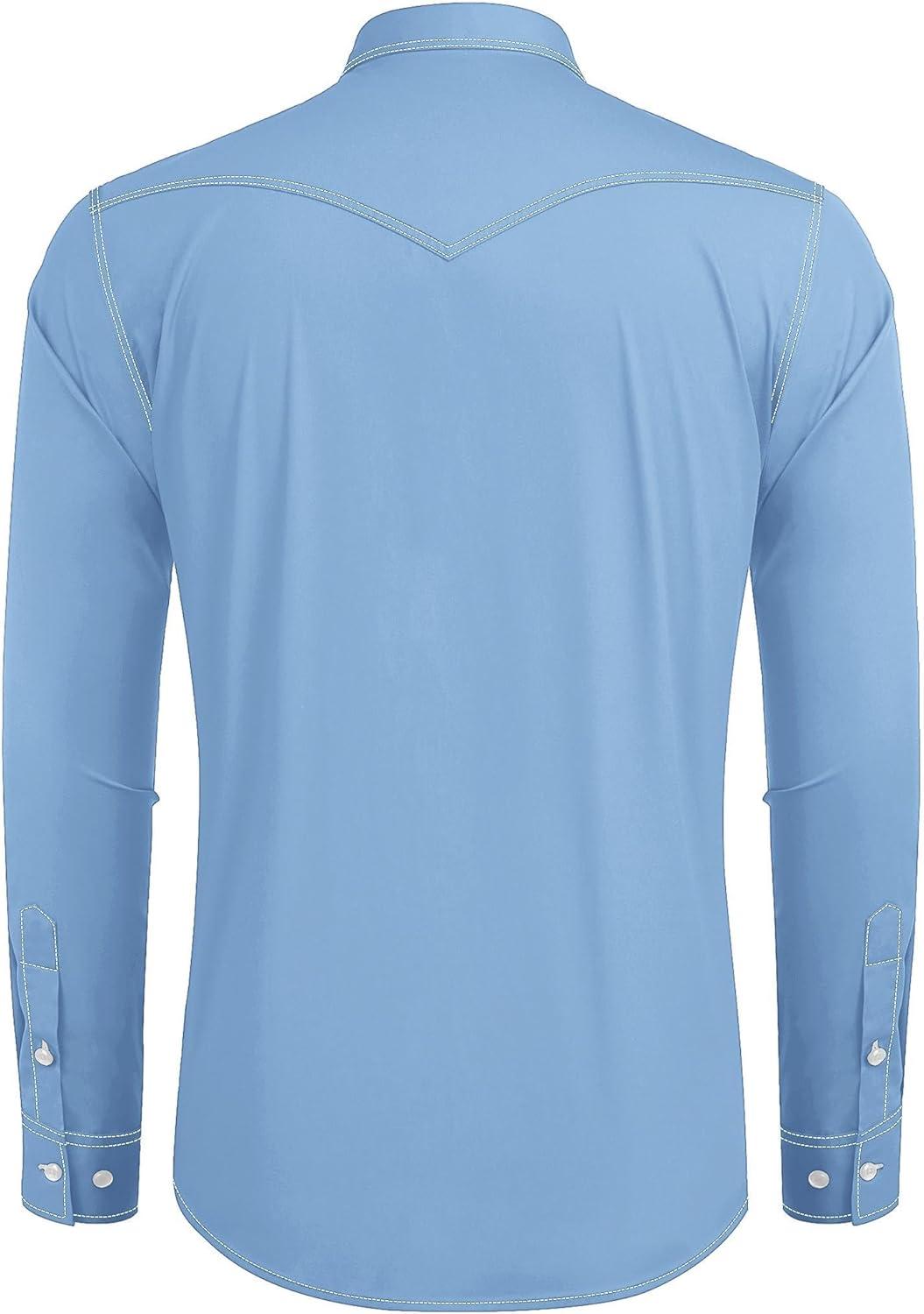 COOFANDY Men’s Western Cowboy Shirts Long Sleeve Cotton Casual Button Down Work Shirt with Pockets(Light Blue)