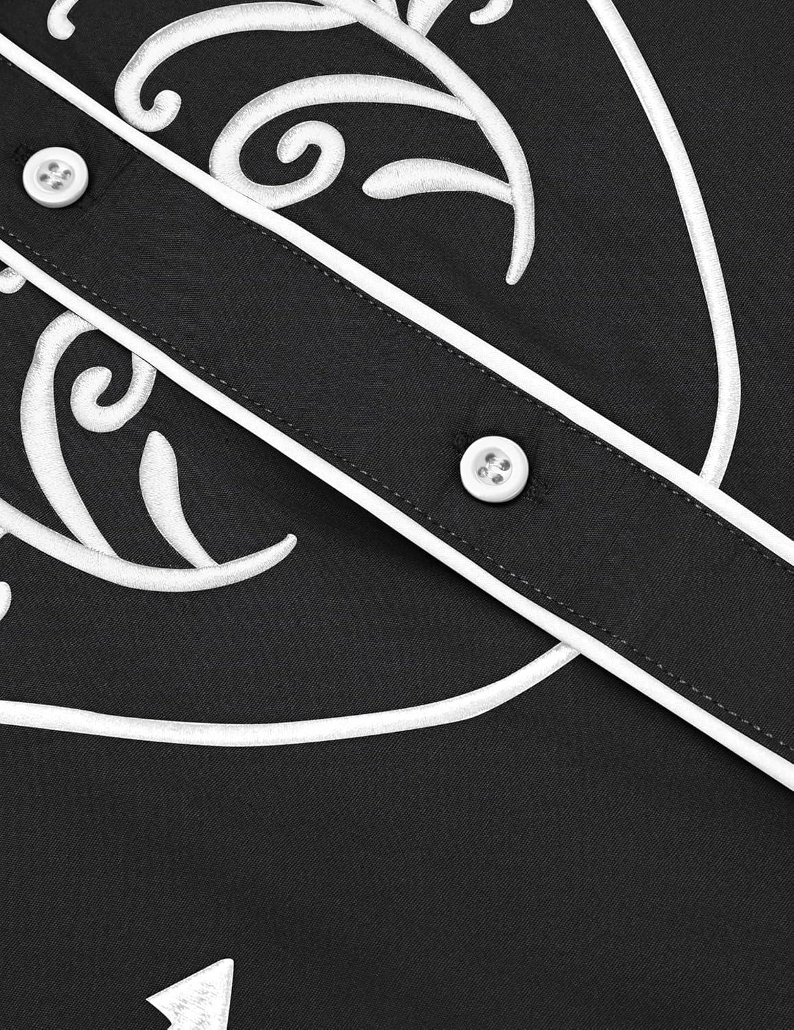 COOFANDY Men’s Western Cowboy Shirts Long Sleeve Embroidered Shirt Slim Fit Casual Button Down Shirts(Black (Pattern 4))