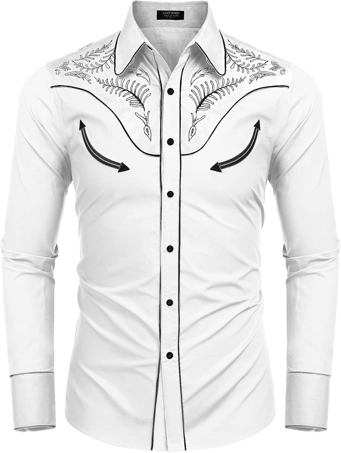 COOFANDY Men’s Western Cowboy Shirts Long Sleeve Embroidered Shirt Slim Fit Casual Button Down Shirts(Cotton – Pure White)