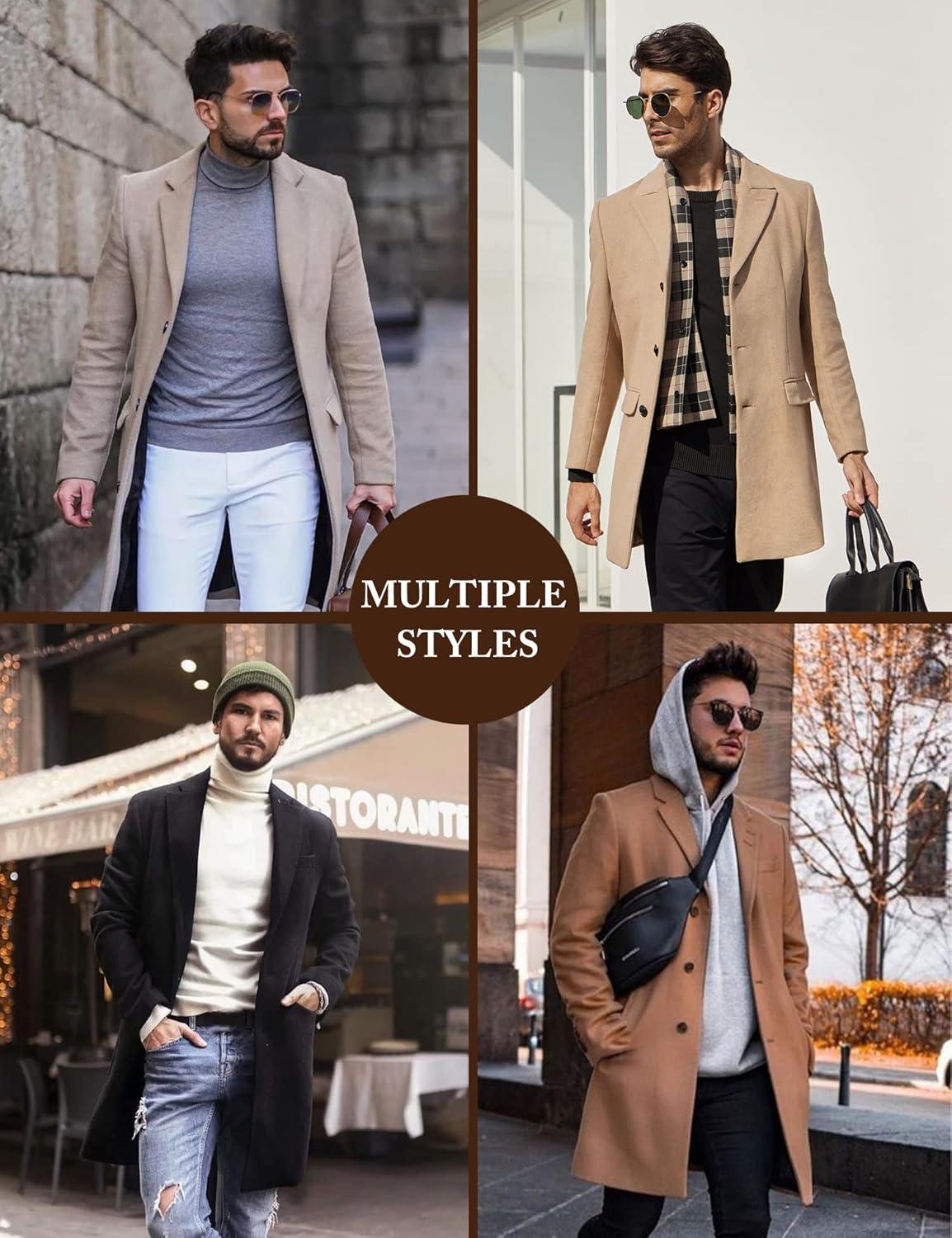 COOFANDY Men’s Wool Blend Coat with Detachable Plaid Scarfs Notched Collar Single Breasted Pea Coat Trench Overcoat(Navy Blue)