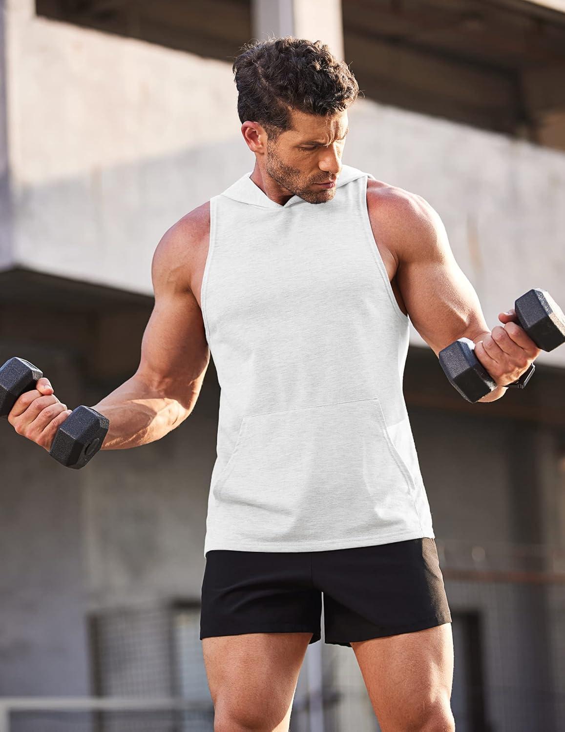 COOFANDY Men’s Workout Hooded Tank Tops Bodybuilding Muscle Cut Off T Shirt Sleeveless Gym Hoodies(White)