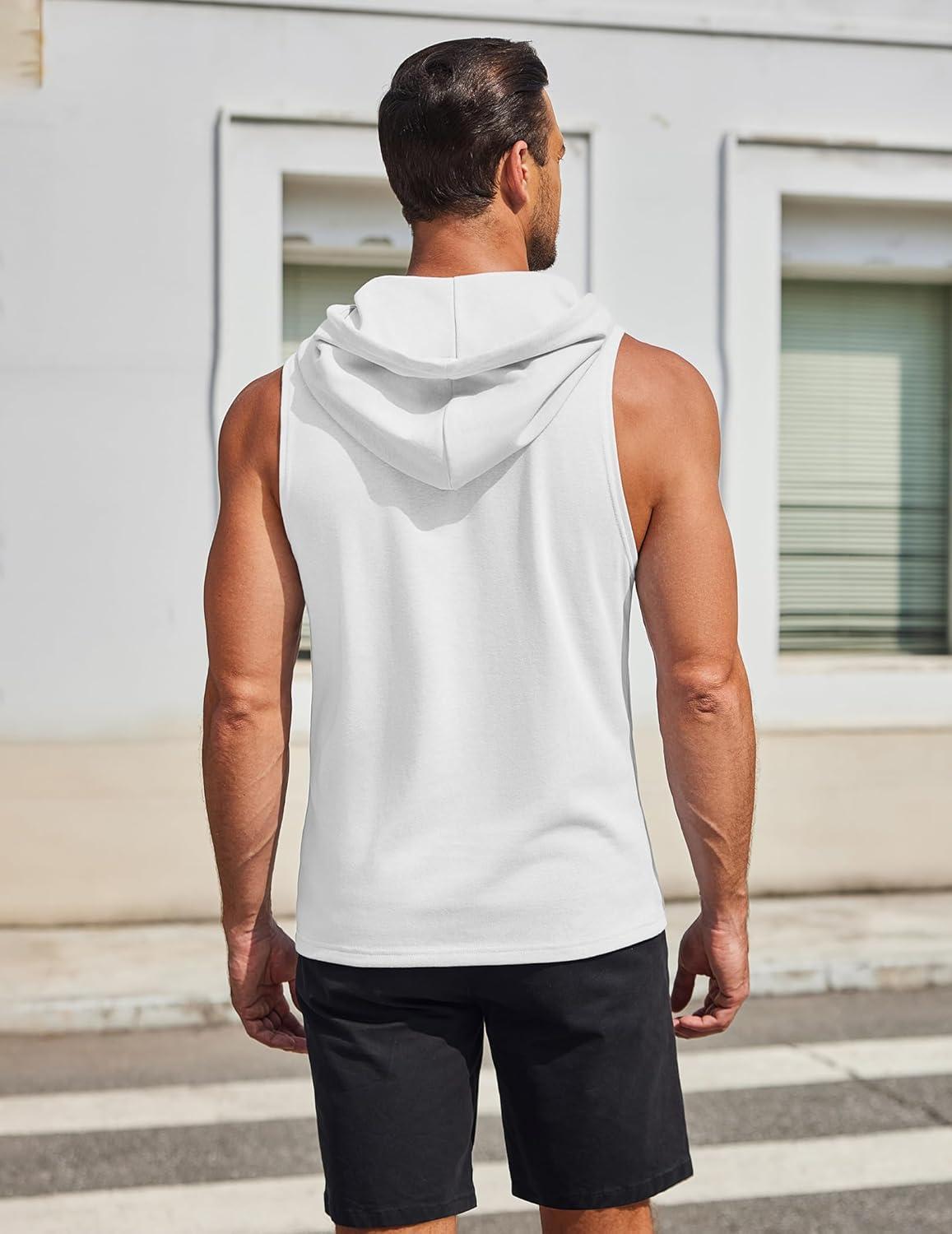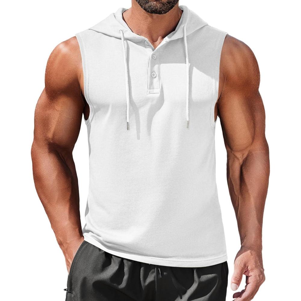 COOFANDY Men’s Workout Hooded Tank Tops Sleeveless Gym Hoodies Cotton Muscle Cut Off Shirt Bodybuilding Henley Shirts(White)