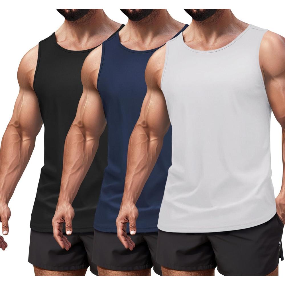 COOFANDY Men’s Workout Tank Top 3 Pack Quck Dry Sleeveless Gym Muscle Shirts Summer Swim Beach Tops(Black/Navy Blue/Grey)