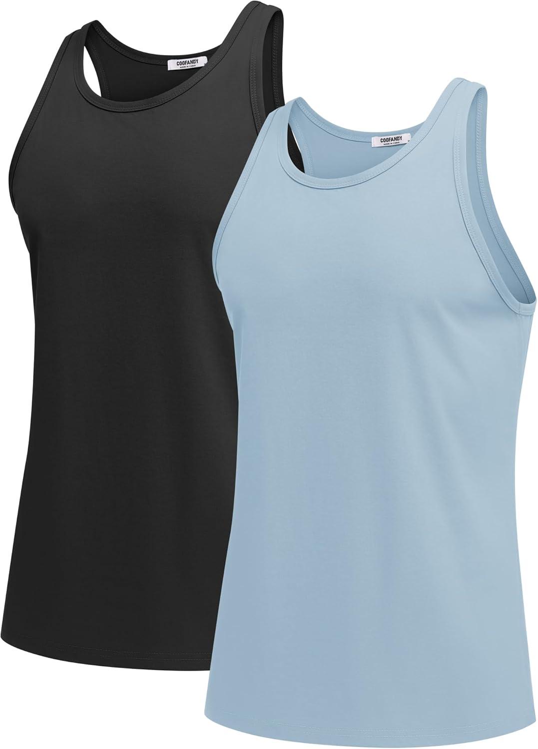 COOFANDY Men’s Workout Tank Tops 2 Pack Y Back Sleeveless Shirts Gym Muscle T Shirt Bodybuidling Athletic Stringer Tee(Black/Light Blue)