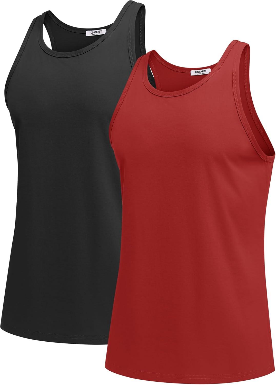 COOFANDY Men’s Workout Tank Tops 2 Pack Y Back Sleeveless Shirts Gym Muscle T Shirt Bodybuidling Athletic Stringer Tee(Black/Wine Red)