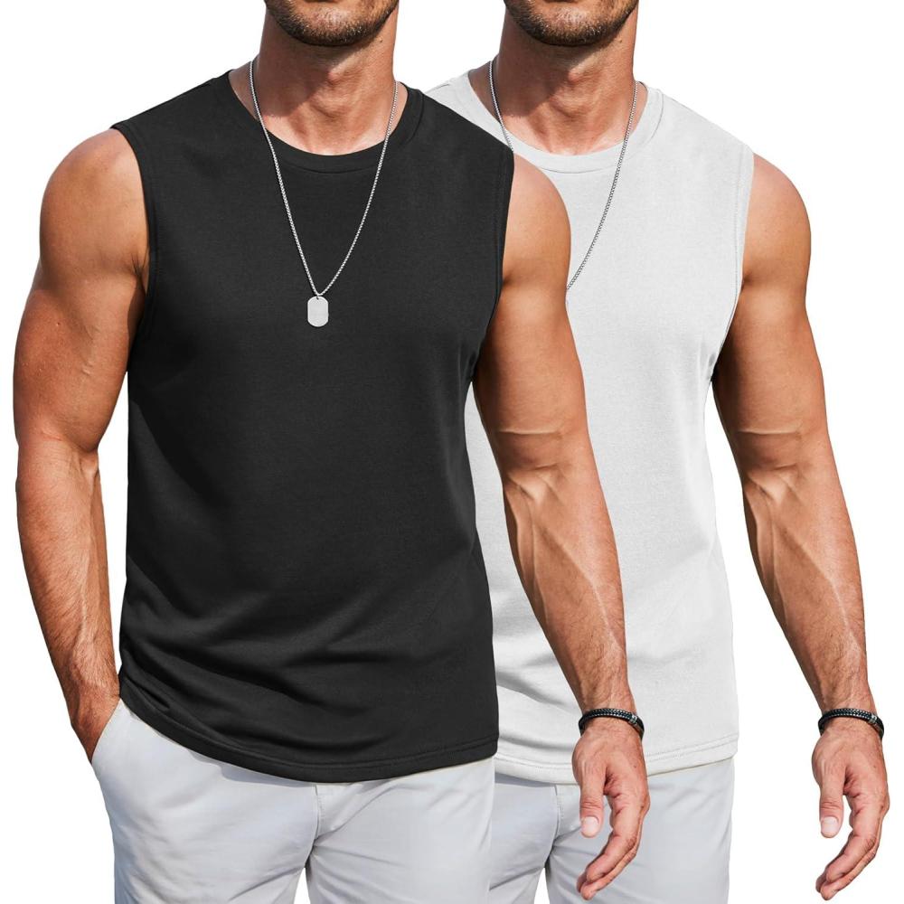 COOFANDY Mens Workout Tank Tops Cotton 3 Pack Soft Gym Muscle Shirt Sleeveless Classic T Shirts(Black/White)