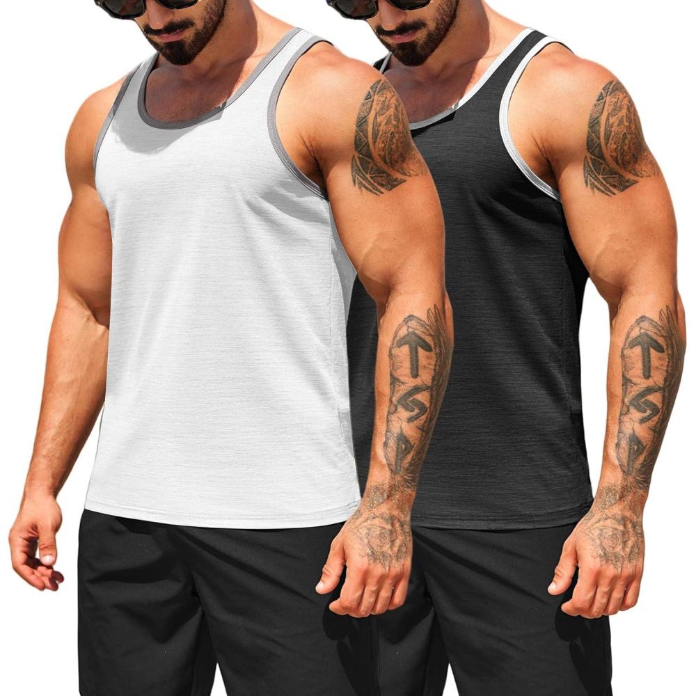 COOFANDY Men’s Workout Tank Tops Pack Dry Fit Sleeveless Running Shirts Gym Muscle Bodybuilding T Shirts(Black/White)