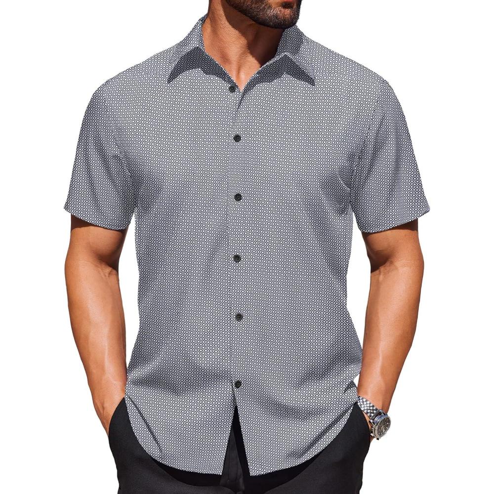 COOFANDY Mens Wrinkle Free Dress Shirt Polka Dot Short Sleeve Button Down Business Casual Shirts(Black-square)